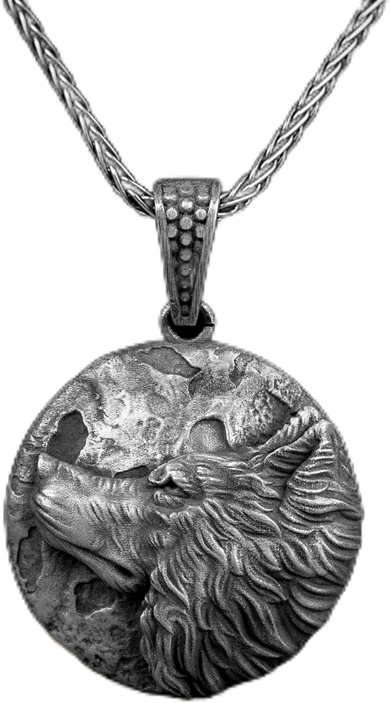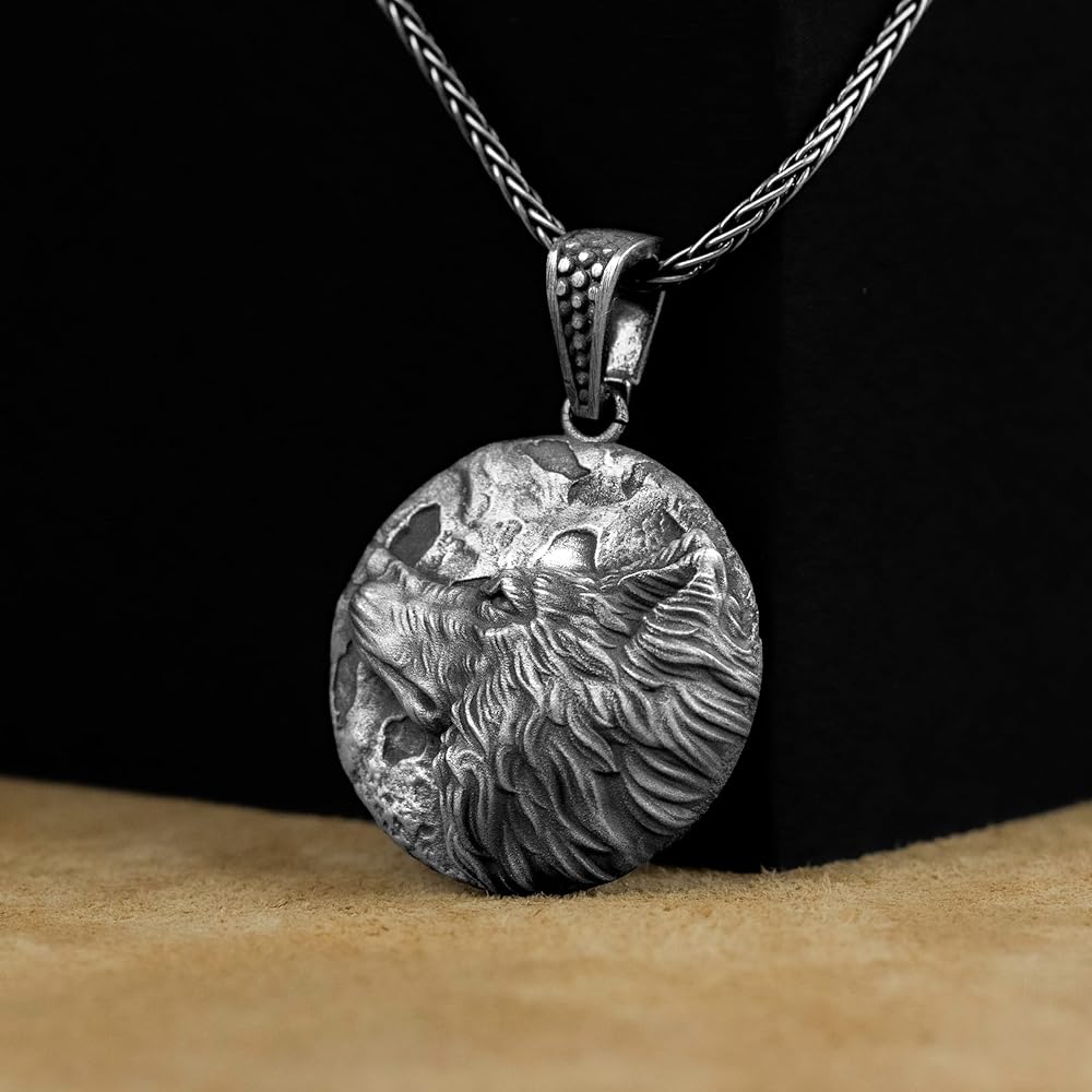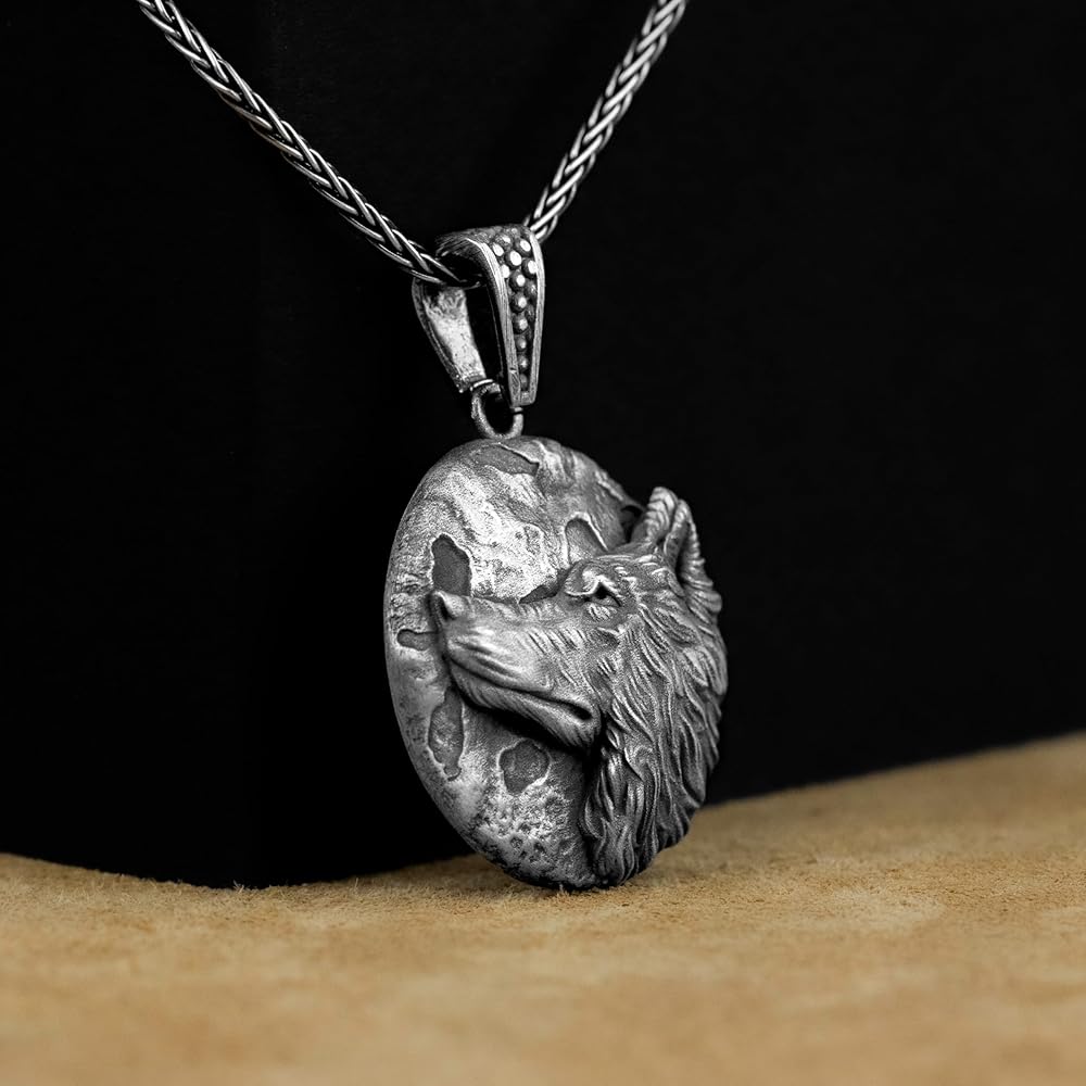Celtic Wolf Pendant, Wolf with Moon Relief Charming Men Silver Necklace, Celtic Jewelry, Scandinavian Mythology, Viking Wolf Gift Pendant