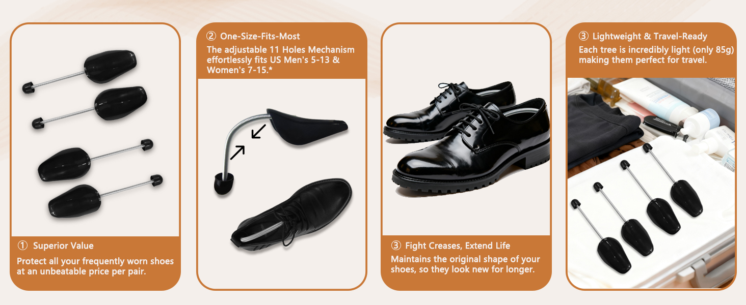 【عبوة من قطعتين ذات قيمة فائقة】- احصل على قيمة لا مثيل لها مع مجموعة كاملة من شجرتي أحذية. مثالي لحماية جميع أحذيتك التي ترتديها بشكل متكرر - الأحذية الرسمية والأحذية الرياضية والأحذية الطويلة والمزيد - دون شراء عدة أزواج بشكل فردي.