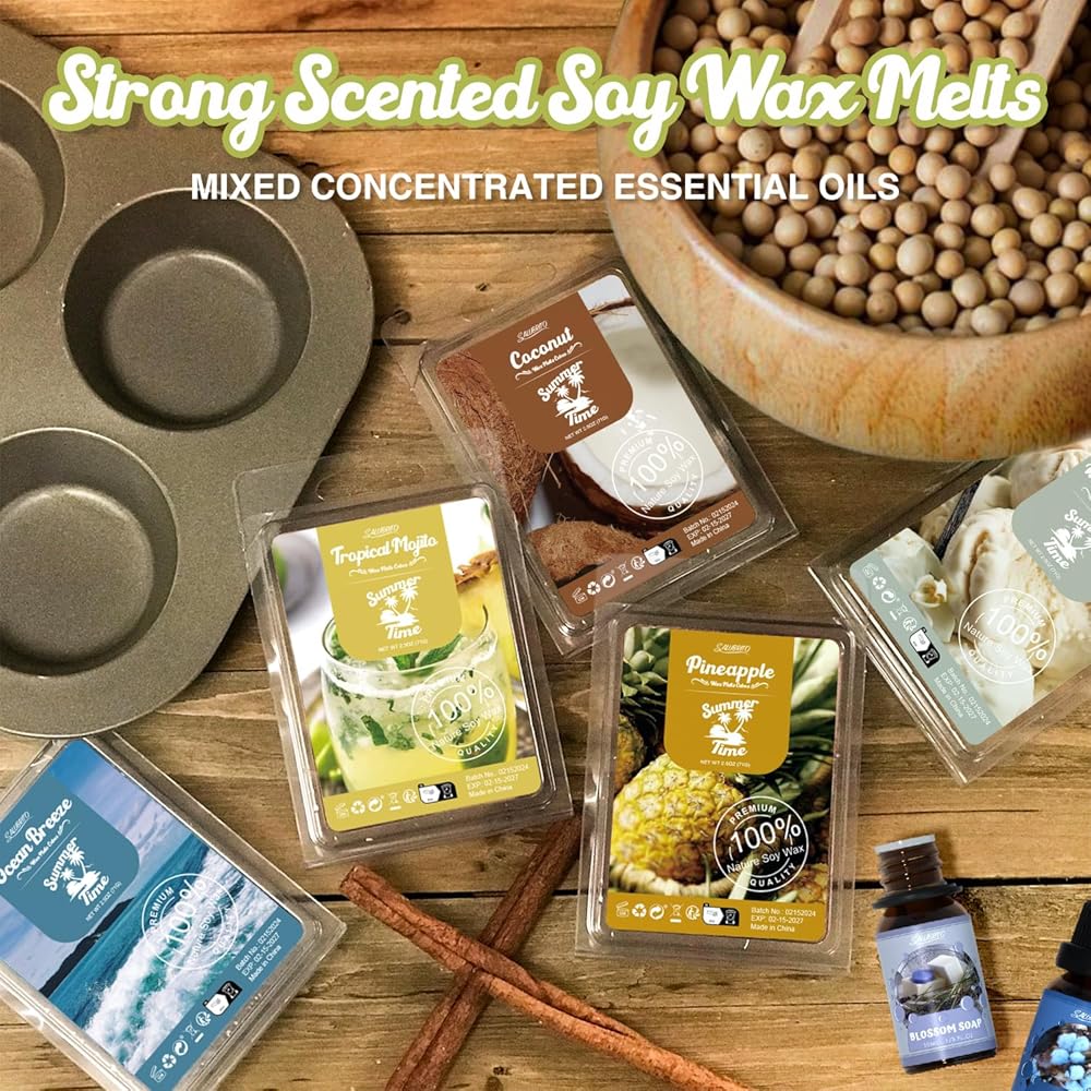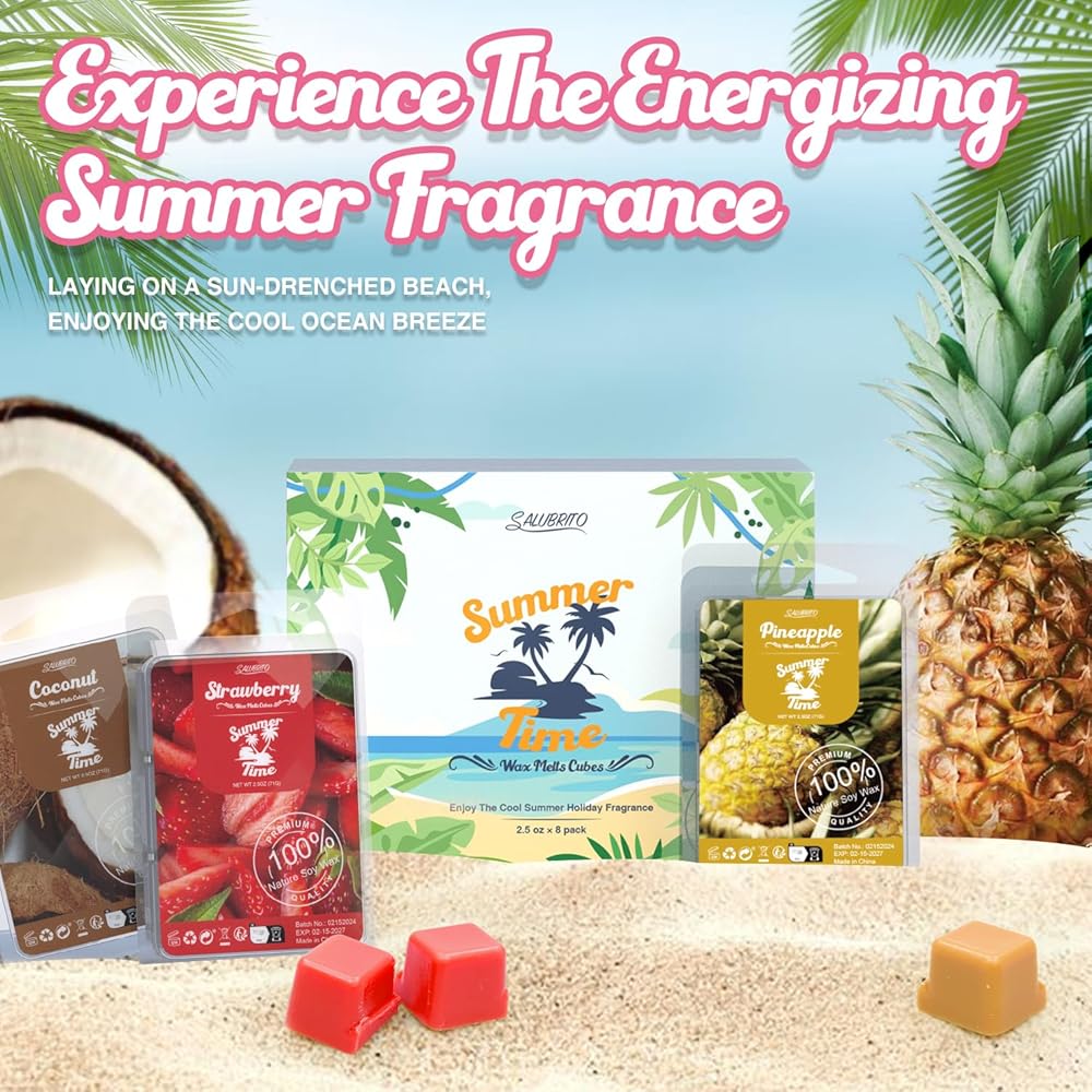 يذوب الشمع المعطر الصيفي من سالوبريتو، مجموعة هدايا متنوعة من مكعبات شمع الصويا المعطرة القوية/الفطائر، قطن طازج، نسيم المحيط، موهيتو، الجزيرة الوردية، جوز الهند، الأناناس، كريم الفانيليا، الفراولة، 8 × 2.5 أونصة