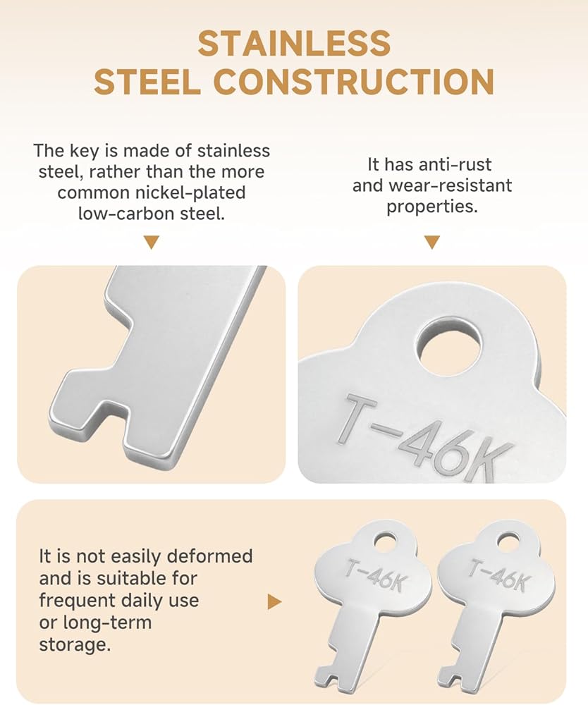 【Stainless Steel Construction】Keys are made from stainless steel instead of common nickel-plated mild steel trunk keys, offering improved resistance to rust and wear when stored in damp basements, garages or workshops and when used frequently over time