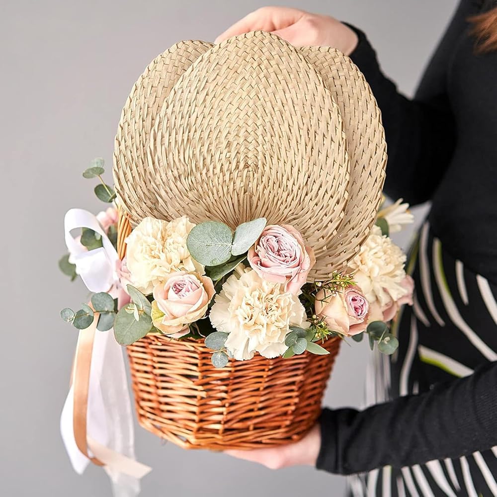 IDEAL FOR GROUND - Set of six hand braided raffia fans, perfect for everyday use and festive events like weddings. Share with family and friends while meeting your decorative needs with elegance and simplicity.