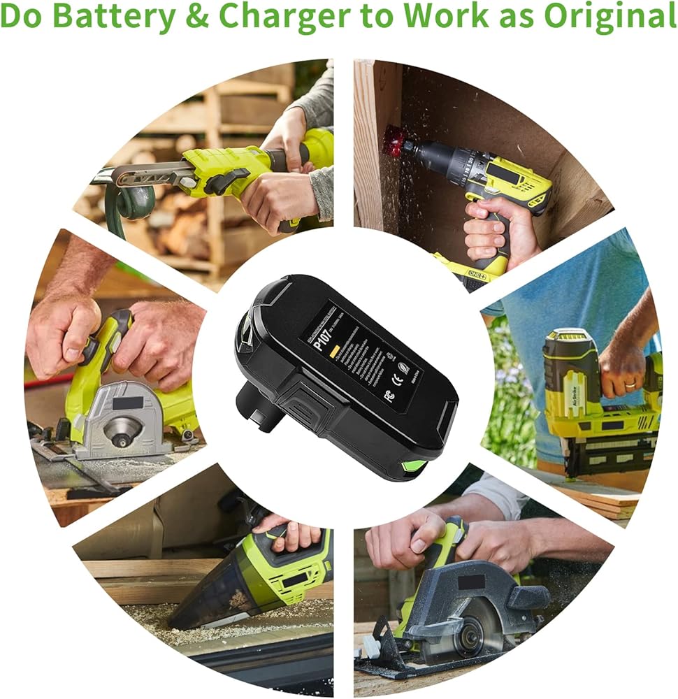 • 🌳【التوافق: استبدل Ryobi P102، P103، P104، P105، P107، P108، P109 ومتوافق مع جميع أدوات الطاقة اللاسلكية لنظام Ryobi 18V ONE+. يدعم الشحن السريع لشاحن Ryobi P117 P118. يساعدك مؤشر الطاقة المدمج على إنهاء عملك بحكمة أكبر.