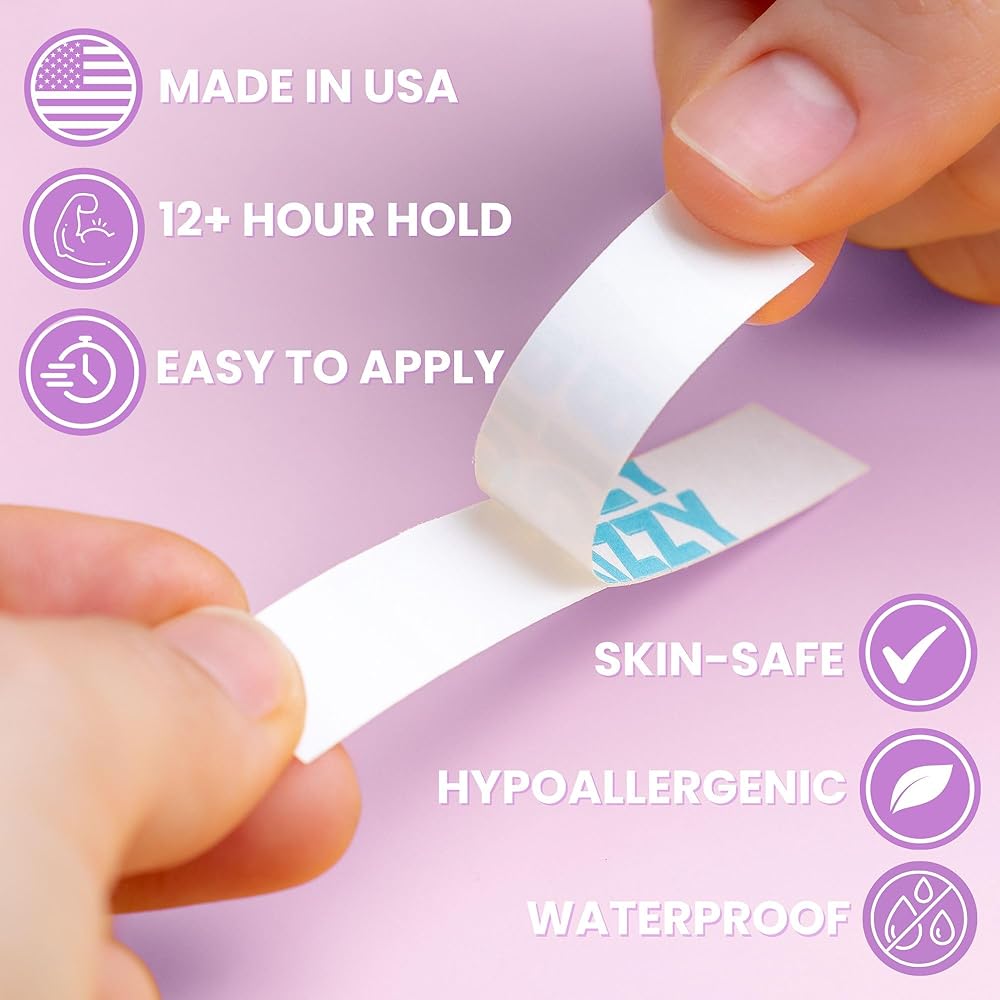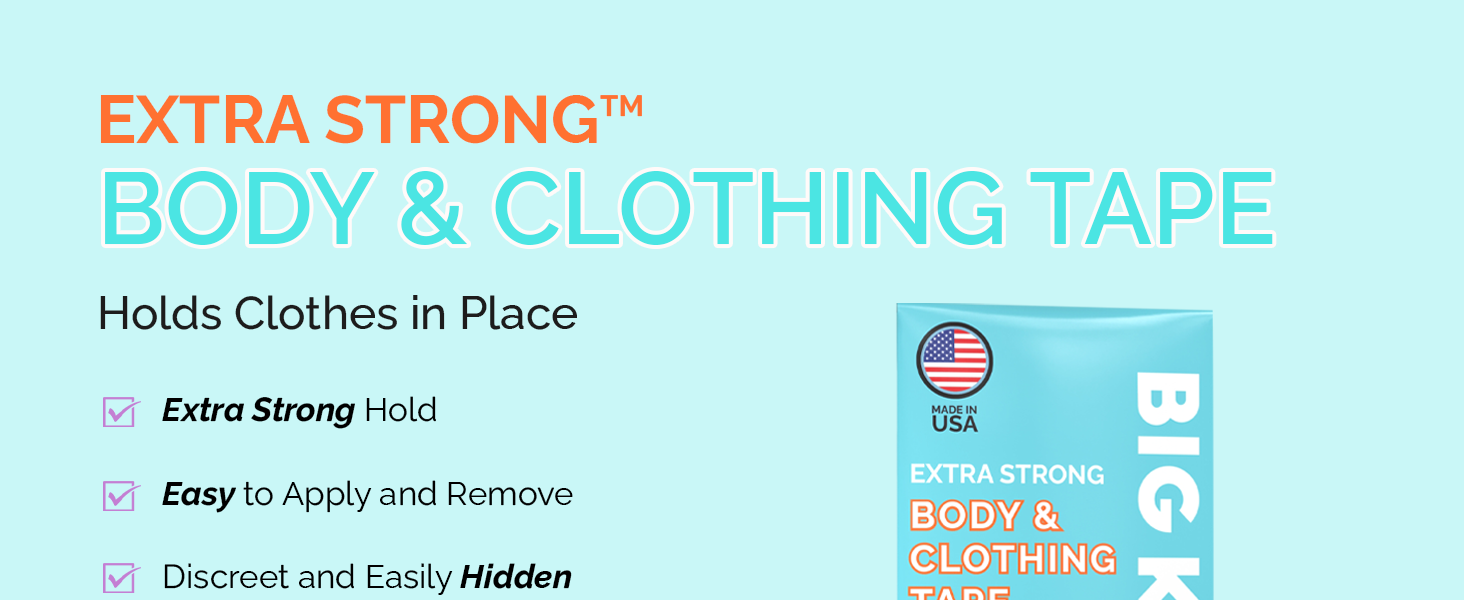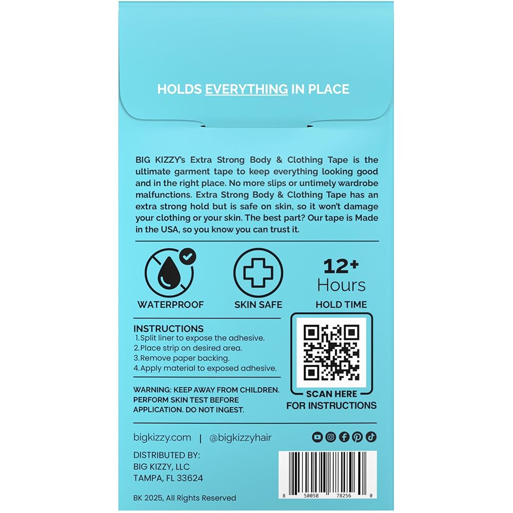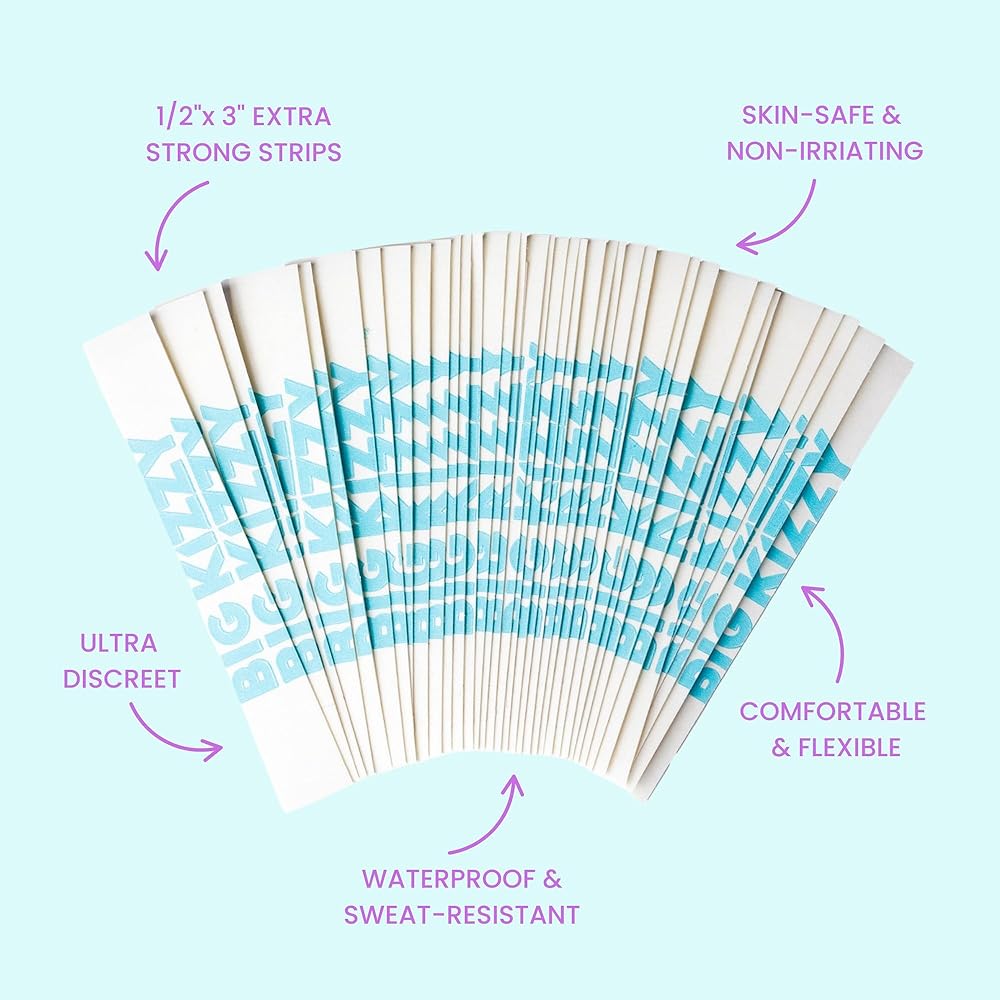شرائط شريطية قوية جدًا للجسم والملابس من Big Kizzy، شريط أنيق شفاف مزدوج الجوانب للنساء - للملابس أو الفساتين أو الجلد أو القماش أو الحواشي (50 شريطًا)