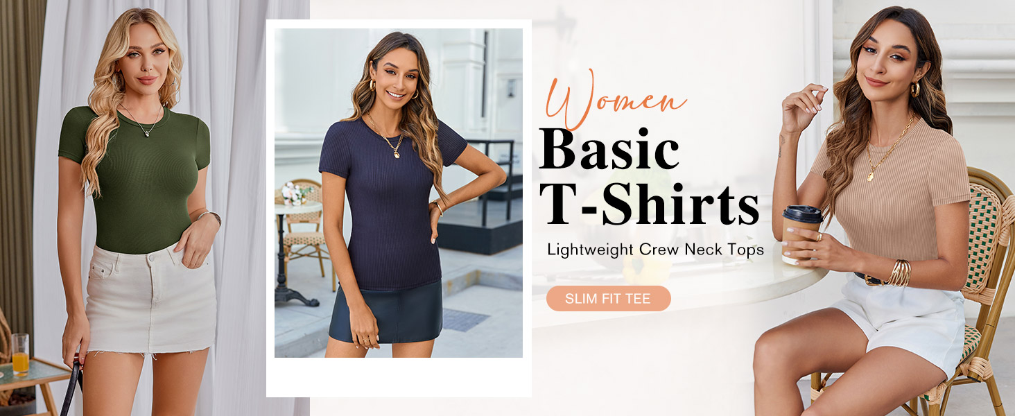 • التصميم الأساسي: رقبة دائرية كلاسيكية وأكمام قصيرة، يمكنك ارتداؤه بمفرده أو كطبقة أساسية. يمكن أن تُظهر هذه القمصان ذات المقاس النحيف إحساسًا بالأناقة والأزياء والقليل من الإثارة التي تناسب السيدات.