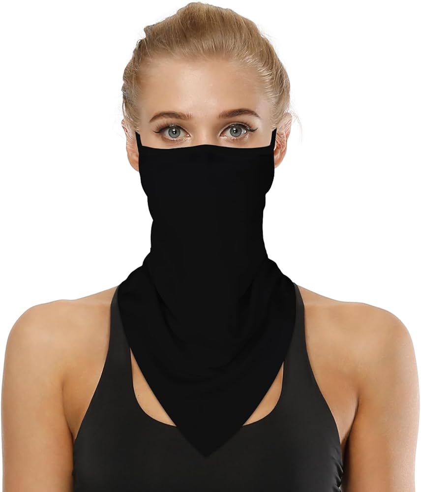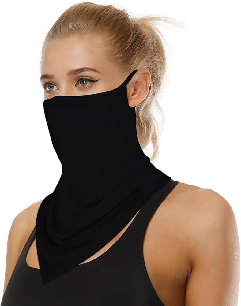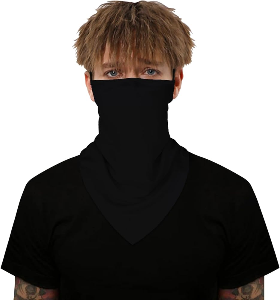 YAYOUREL 3D Neck Gaiter Face Mask Covering Bandanas for Men Women UV Cooling Face Scarf Mask Cover Ear Loop Hole Triangle Facemask Headwear Headband for Fishing Running Cycling Hiking Hunting Bike Riding Motorcycling Sports Mask Outdoor Dust Wind UV Sun Protection