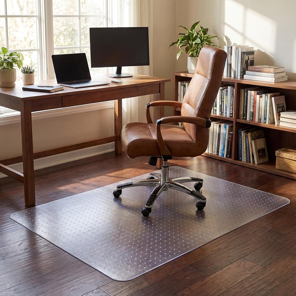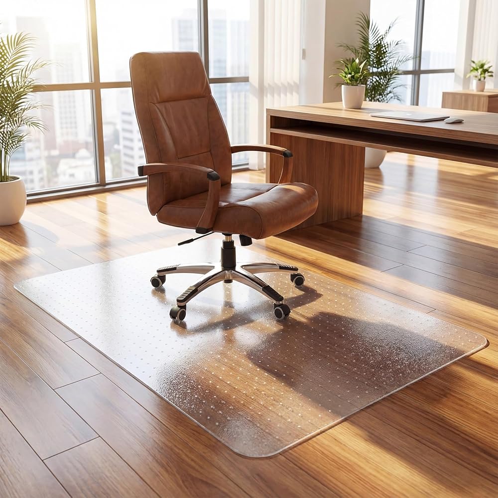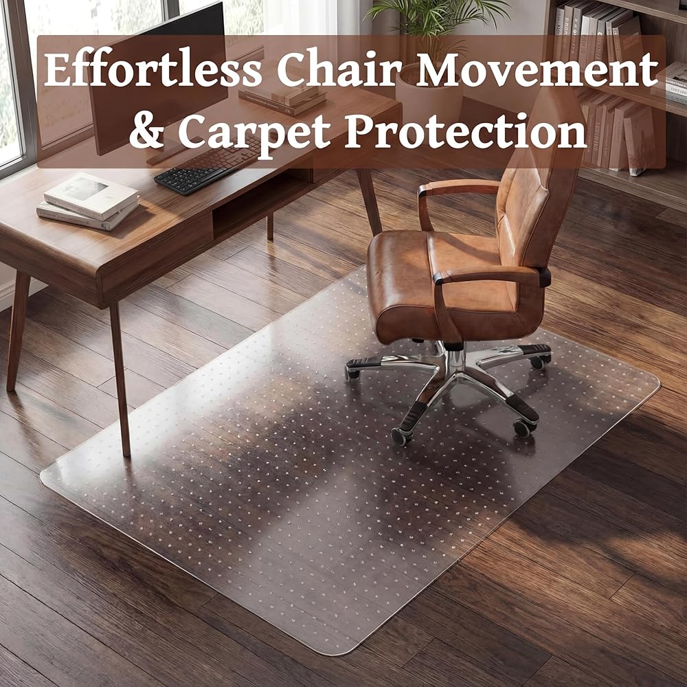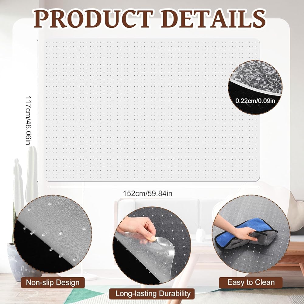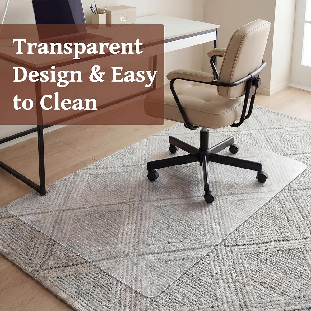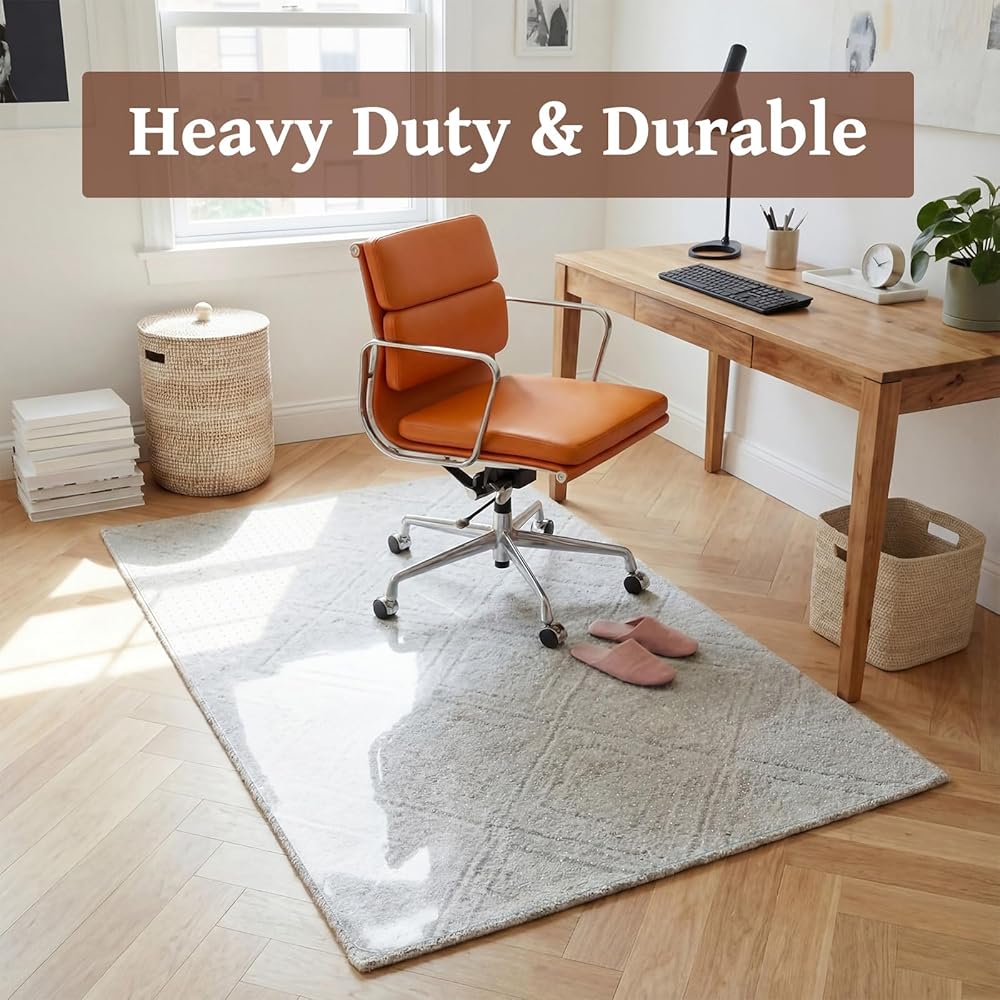 Durable and Protective: Made from reliable PVC material, this desk chair mat for carpets is durable and can withstand daily wear and tear, protecting your home or office floors from damage caused by chair casters or furniture