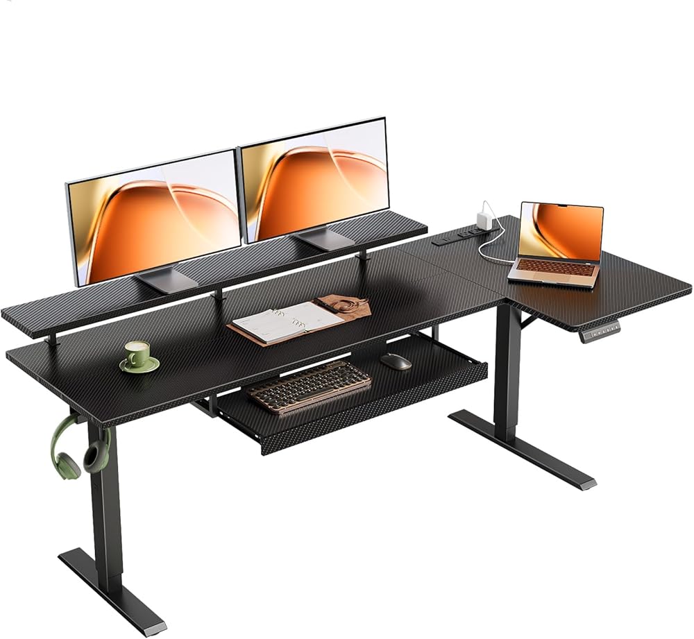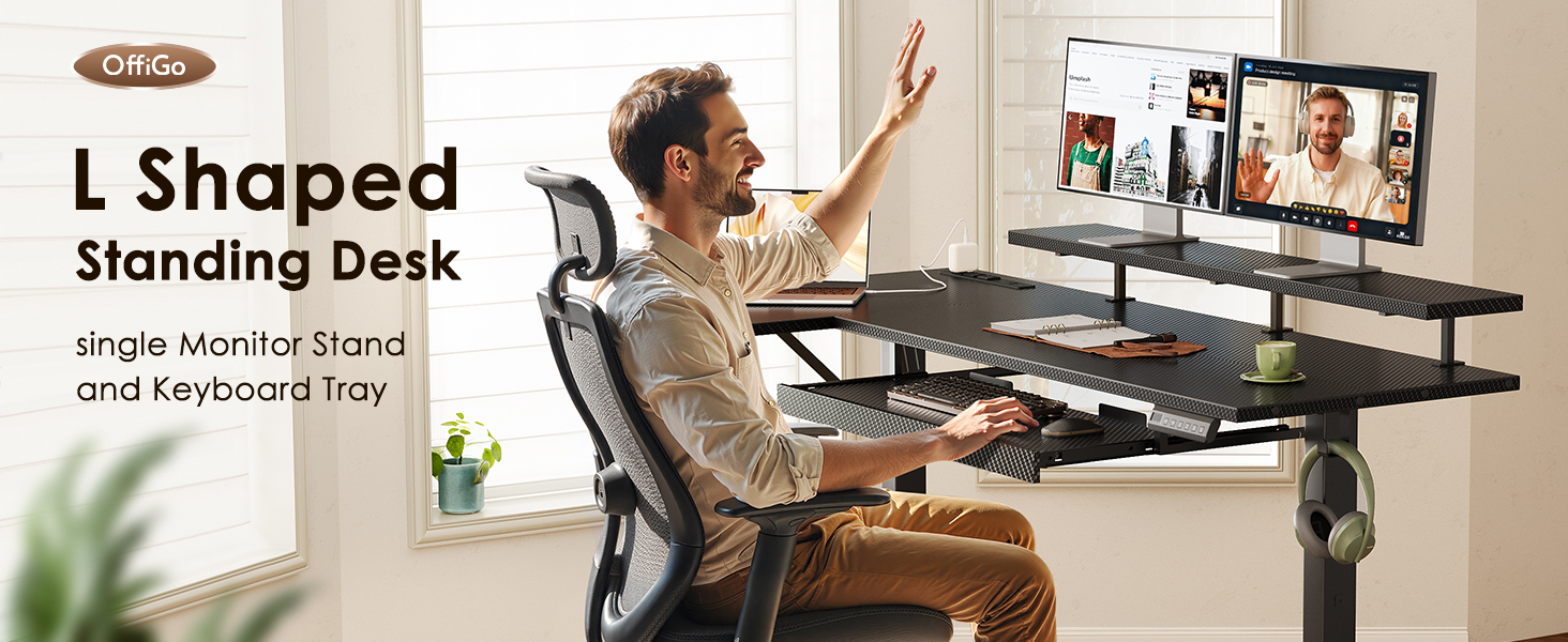تصميم ذو وجهين على شكل حرف L: يمكنك تخصيص مكتب الوقوف عن طريق تثبيت لوحة الطاولة الفرعية على جانبك الأيسر أو الأيمن بناءً على تفضيلاتك. ويمكن لللوحة الإضافية مقاس 31.5 بوصة × 15.8 بوصة توسيع مساحة العمل الخاصة بك
