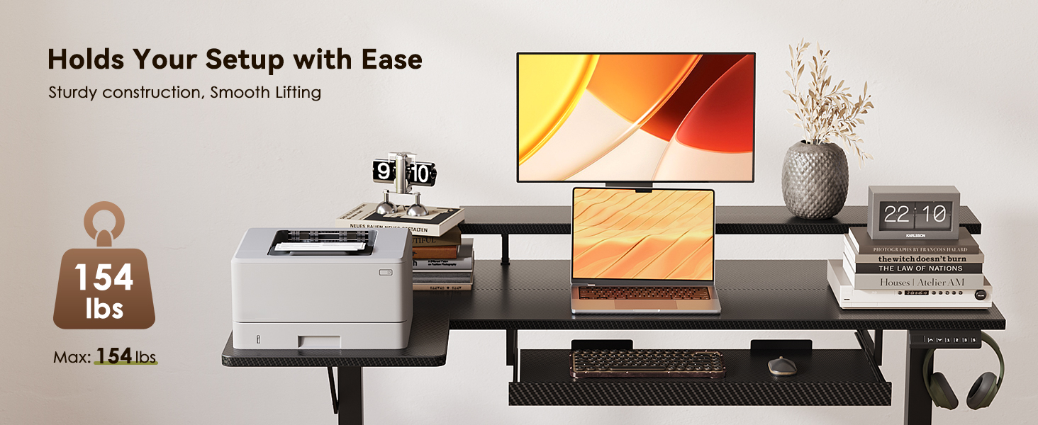 تعديل الارتفاع الكهربائي: يتيح لك مكتب الوقوف ذو الارتفاع القابل للتعديل تعديل ارتفاع الاستخدام من 28.4 بوصة إلى 47.2 بوصة. أزرار ذاكرة الارتفاع الثلاثة يمكن التبديل بسهولة بين وضعية الجلوس والوقوف