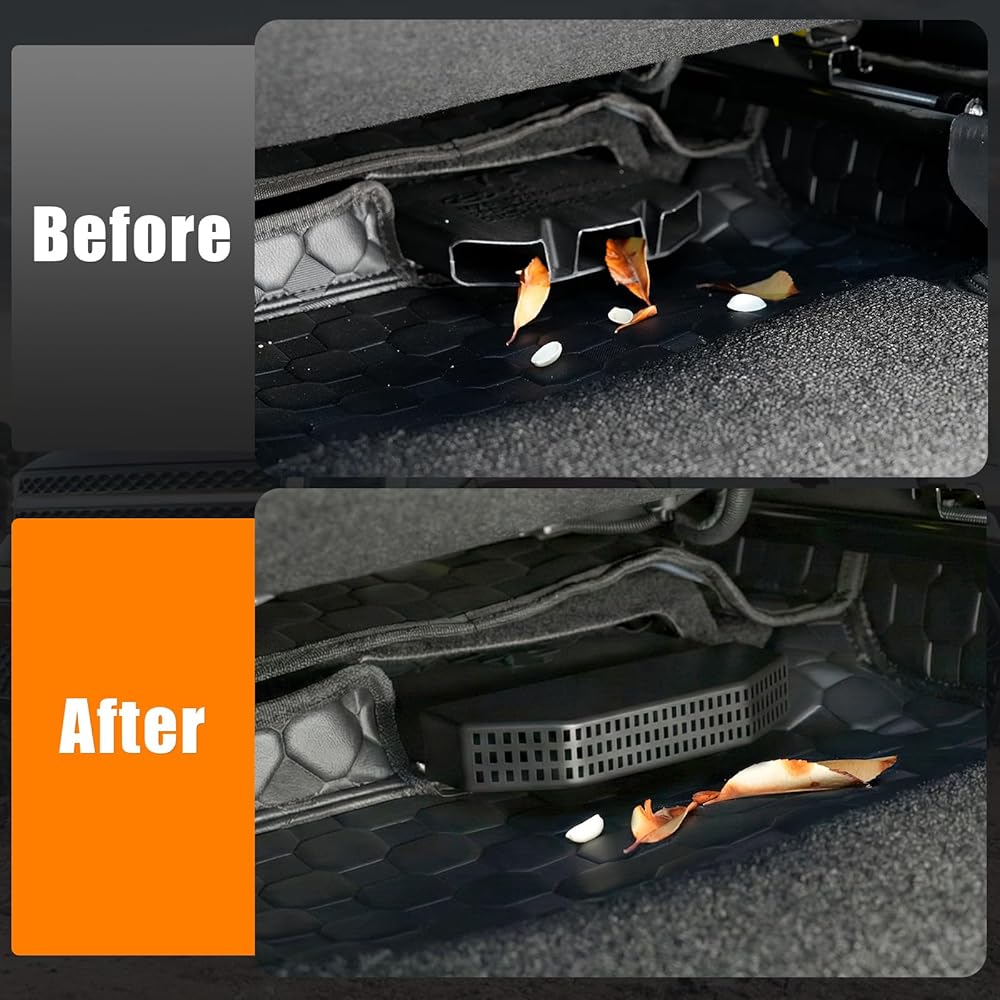 • الوظيفة: يعمل هذا العاكس كحاجز وقائي لفتحات الهواء المكشوفة أسفل مقاعدك الأمامية. فهو يمنع بشكل فعال الحطام وقصاصات الورق والأشياء الصغيرة الأخرى من السقوط، ويمنع الانسدادات قبل أن تبدأ. من خلال الحفاظ على فتحات التهوية نظيفة، فإنه يضمن تدفق الهواء الأمثل لنظام التحكم في المناخ الخاص بك، مما يساعد على الحفاظ على هواء المقصورة النظيف والراحة المستمرة