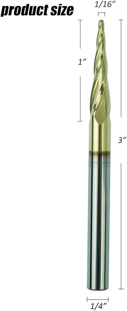 Jiiolioa Z41A3 4 فلوت ثلاثي الأبعاد نحت لولبي مدبب CNC راوتر بت ZRN مطلي 1/4 بوصة عرقوب 1/16 بوصة × 1 بوصة × 1/4 بوصة × 3 بوصة