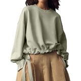 المواد: سويت شيرت نسائي كبير الحجم، سويت شيرت بربطة عنق، سويت شيرت مربوط مصنوع من مزيج القطن عالي الجودة، يوفر هذا السويت شيرت نعومة فائقة، وتهوية، وارتداء طويل الأمد