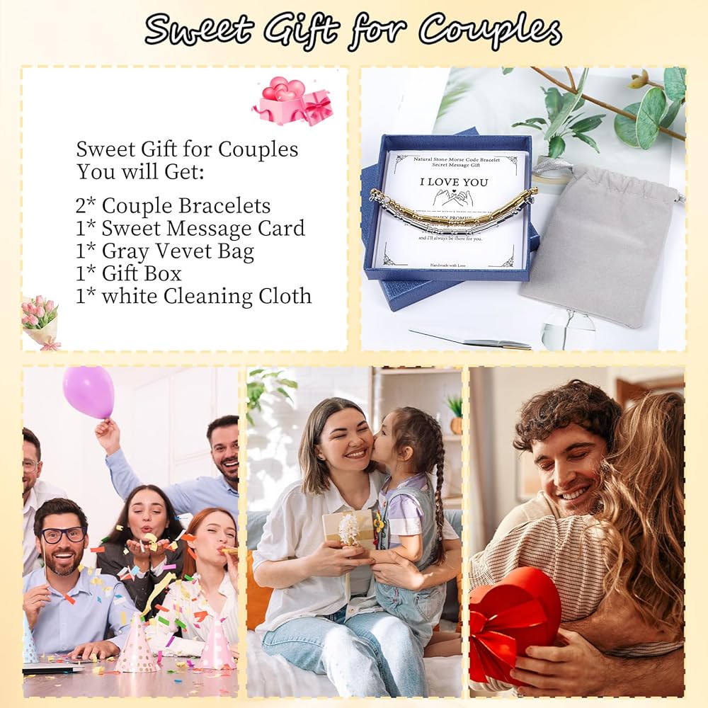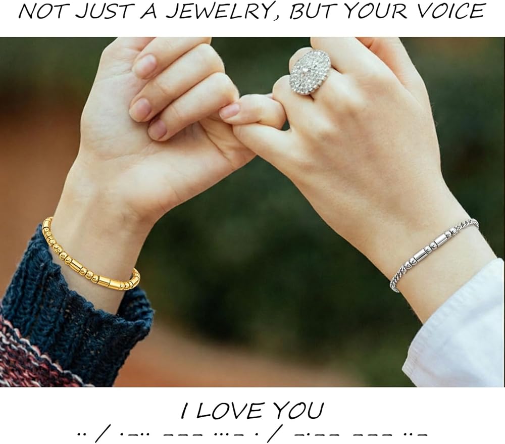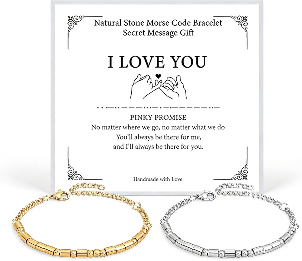 أساور أحبك: سواء كنت تشتري سوارًا لصديقك أو صديقتك، فإن تصميم مورس هذا يحول رباطك إلى رمز شخصي هادئ - عند ارتدائه معًا، فهو أكثر من مجرد مجوهرات، إنه وعد بالرمز