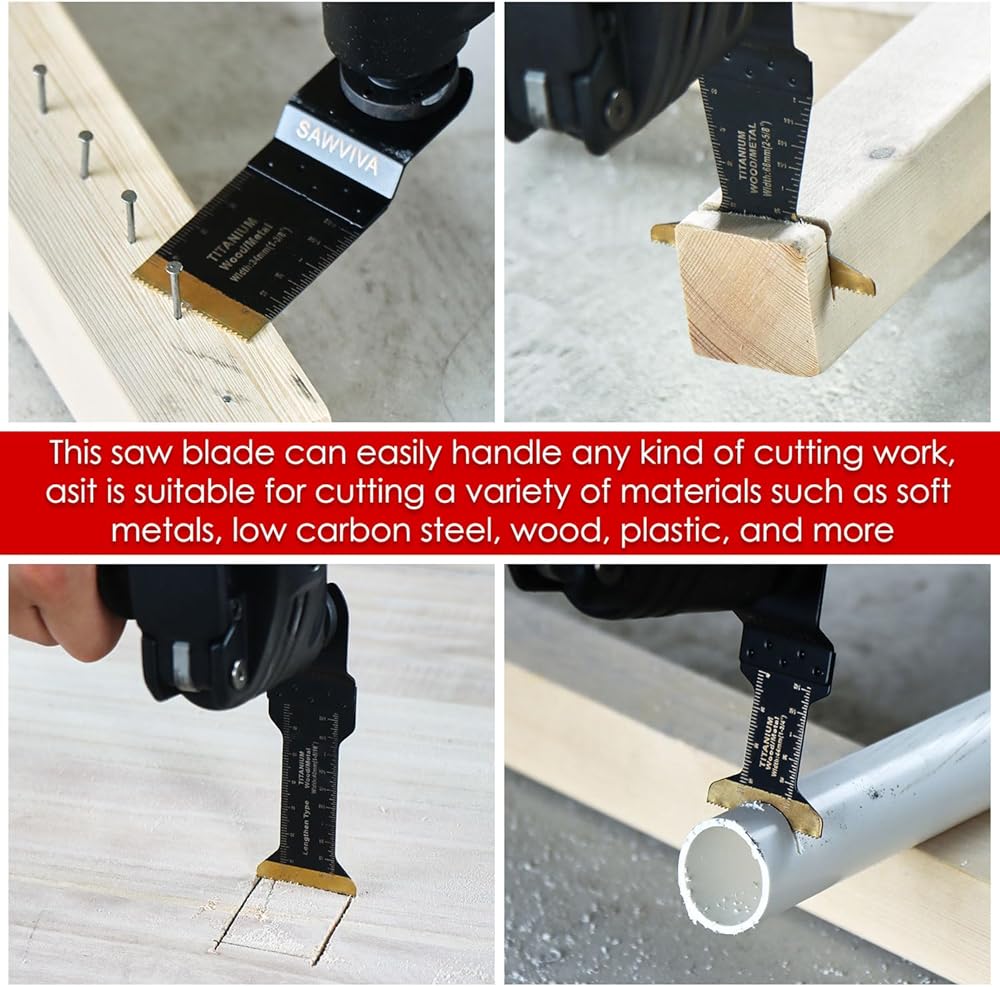 Wide Range of Applications: With their versatile design, SAWVIVA multitool blades can handle a wide range of cutting and sawing tasks. From trimming door frames to removing grout and cutting pipes, these blades are suitable for various materials, including wood, plastic, metal, and more.