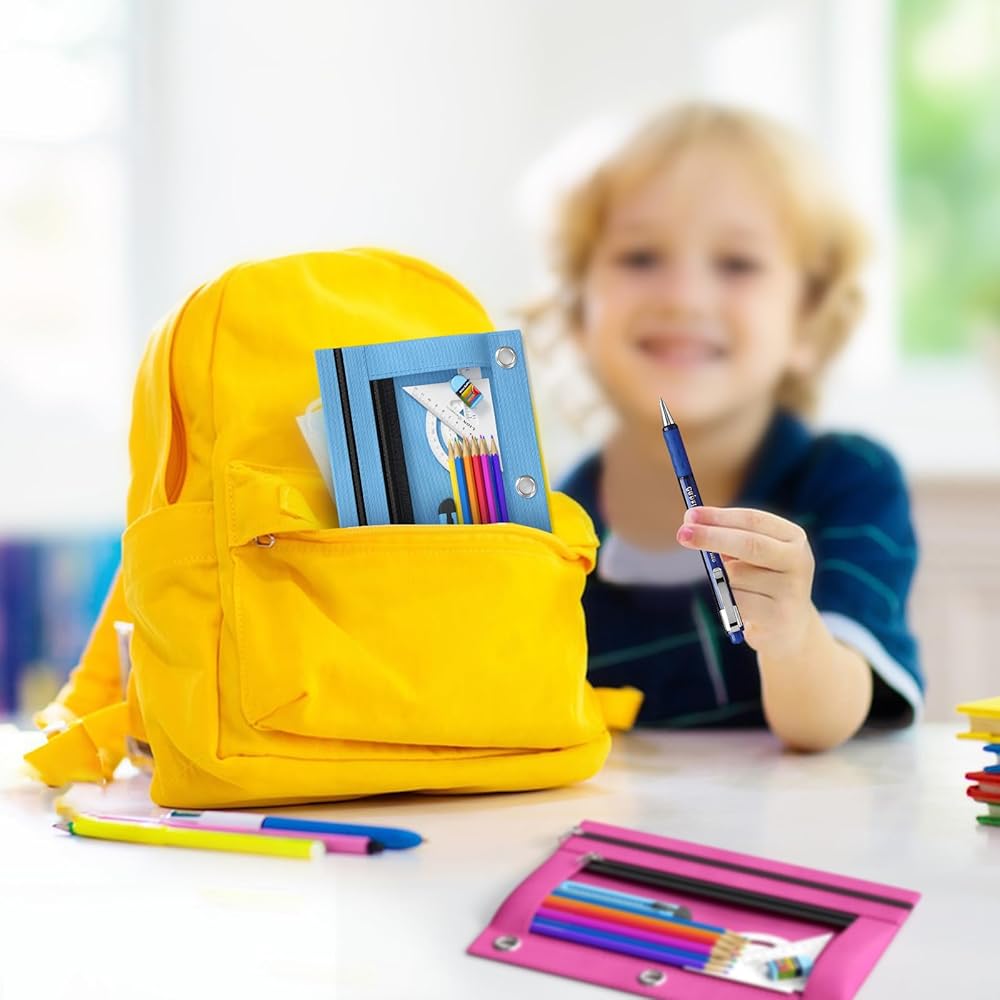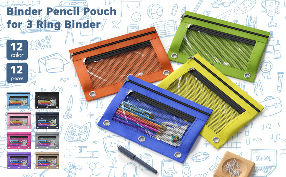 أكياس قلم رصاص من DoDoMagxanadu، حقيبة أقلام رصاص لـ 3 حلقات، حافظة أقلام رصاص شفافة بجيب مزدوج للحافظة، أكياس أقلام رصاص بسحاب مع 3 حلقات مثبتة ببرشام، 12 حزمة
