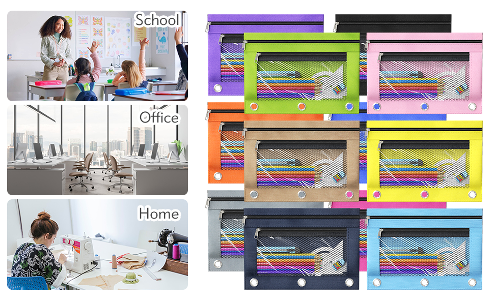 • 【حقيبة قلم رصاص ذات 3 حلقات تناسب المجلدات】يتم ربط 3 حلقات ربط في مجلدات 3 حلقات قياسية، وفتحات مثبتة بمسامير تناسب المجلدات القياسية المكونة من 3 حلقات، ويمكن وضعها في المجلدات