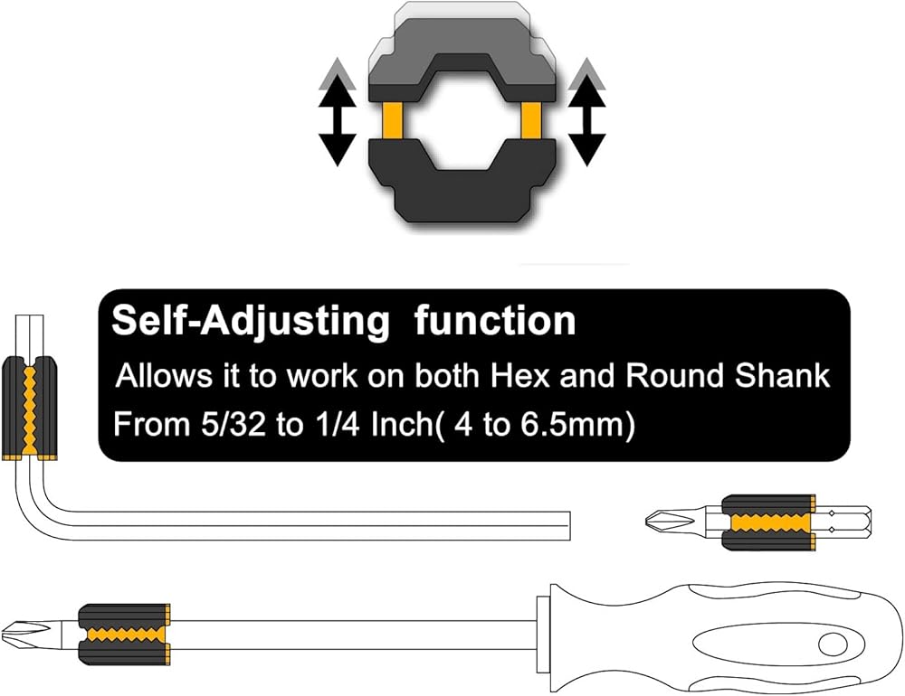- ضبط تلقائي - مناسب لكل من السيقان الدائرية والسداسية. نطاق العمل من 5/32 إلى 1/4 بوصة (4 إلى 6.5 مم)