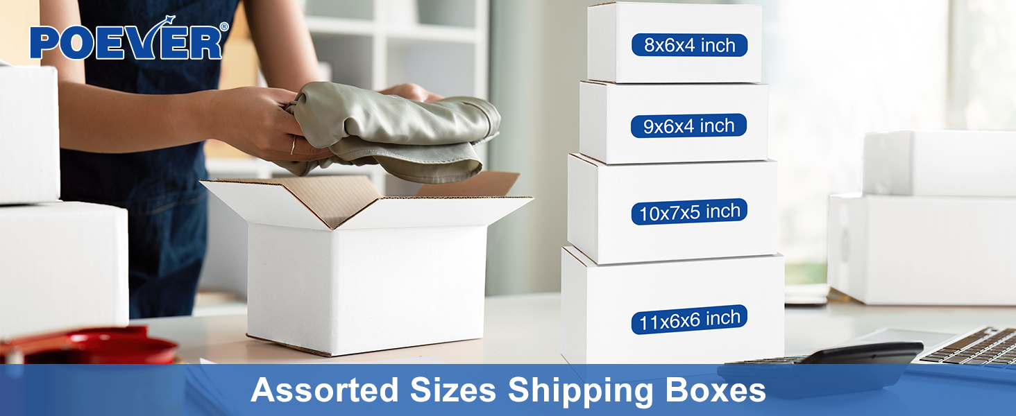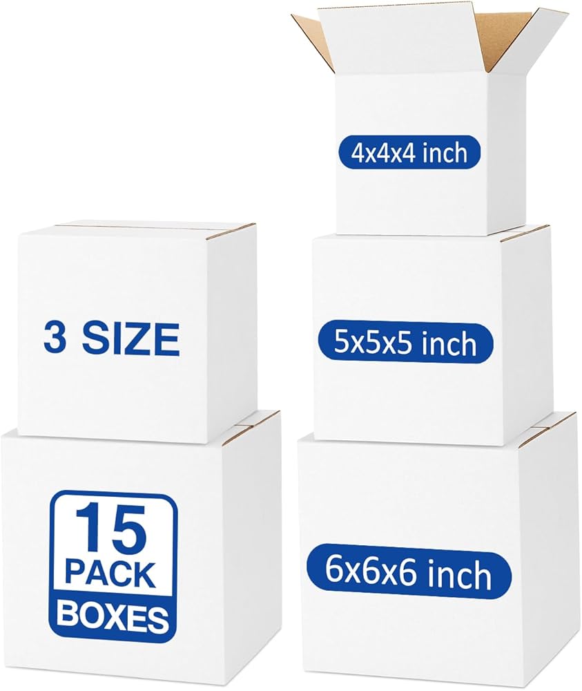 • صناديق شحن صغيرة 20 عبوة: تحتوي كل مجموعة على 5 قطع مقاس 8x6x4 بوصة، و5 قطع مقاس 9x6x4 بوصة، و5 قطع مقاس 10x7x5 بوصة، و5 قطع من صناديق الشحن البيضاء مقاس 11x6x6 بوصة. كمية مناسبة من 20 عبوة من صناديق الشحن بأحجام متنوعة تلبي معظم احتياجات الشحن واحتياجات التعبئة والتغليف