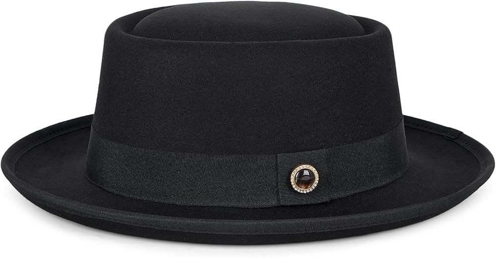 تصميم جديد من PorkPie - تتميز هذه القبعة المصنوعة من اللباد بشكل تاج فطيرة لحم الخنزير الكلاسيكي مع شريط قبعة على شكل فيونكة وحرفية رائعة. نعيدك إلى أزياء القناة في العشرينيات. إنه الخيار الأمثل للارتداء اليومي والحفلات. بالإضافة إلى ذلك، فهو يأتي مع اثنين من الملحقات المزخرفة المعدنية المغناطيسية المصنوعة بشكل رائع، مما يضمن لك التميز في أي حفلة.