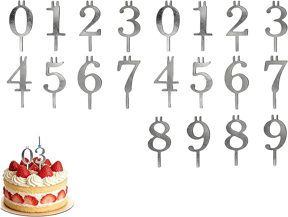 The set includes numbers 0 through 9, allowing you to create any age or milestone year—from "01" to "100" and everything in between. Changing numbers is quick and effortless; no more struggling with flimsy single-use wax numbers or messy sparkler candles. Just wipe clean after use and store for your next party! Why Choose This Number Candle Holder Set? 1. Reusable number holders elevate any celebration's cake decor 2. 0–9 digits create custom ages/dates for diverse milestones 3. Shiny silver design complements all cake & party styles 4. Easy-clean, eco-friendly & durable for repeated use 5. Ideal gift for bakers/hosts who love memorable moments Specification: Product Name: Reusable Number Birthday Candle Holder Set Color: Silver Includes Digits: 0-9 Package includes: 2 Sets* Reusable Number Birthday Candle Holder Set