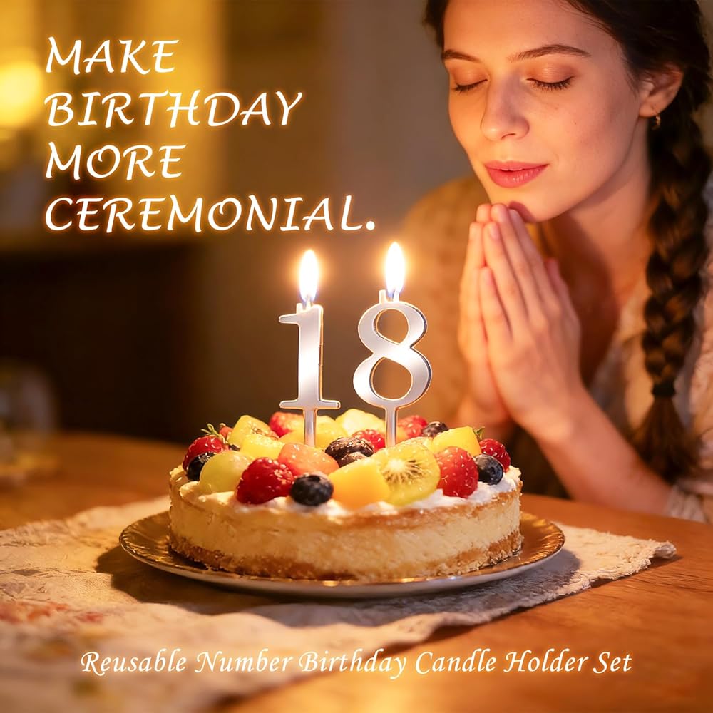 Digital Birthday Cake Candle Holder Set: Make every celebration sparkle with this reusable number candle holder set! Perfect for birthdays, anniversaries, or milestone events, it instantly elevates cake presentation with a sleek and festive touch. Add a personalized flair to any party and impress your guests with professional-looking cake decorations