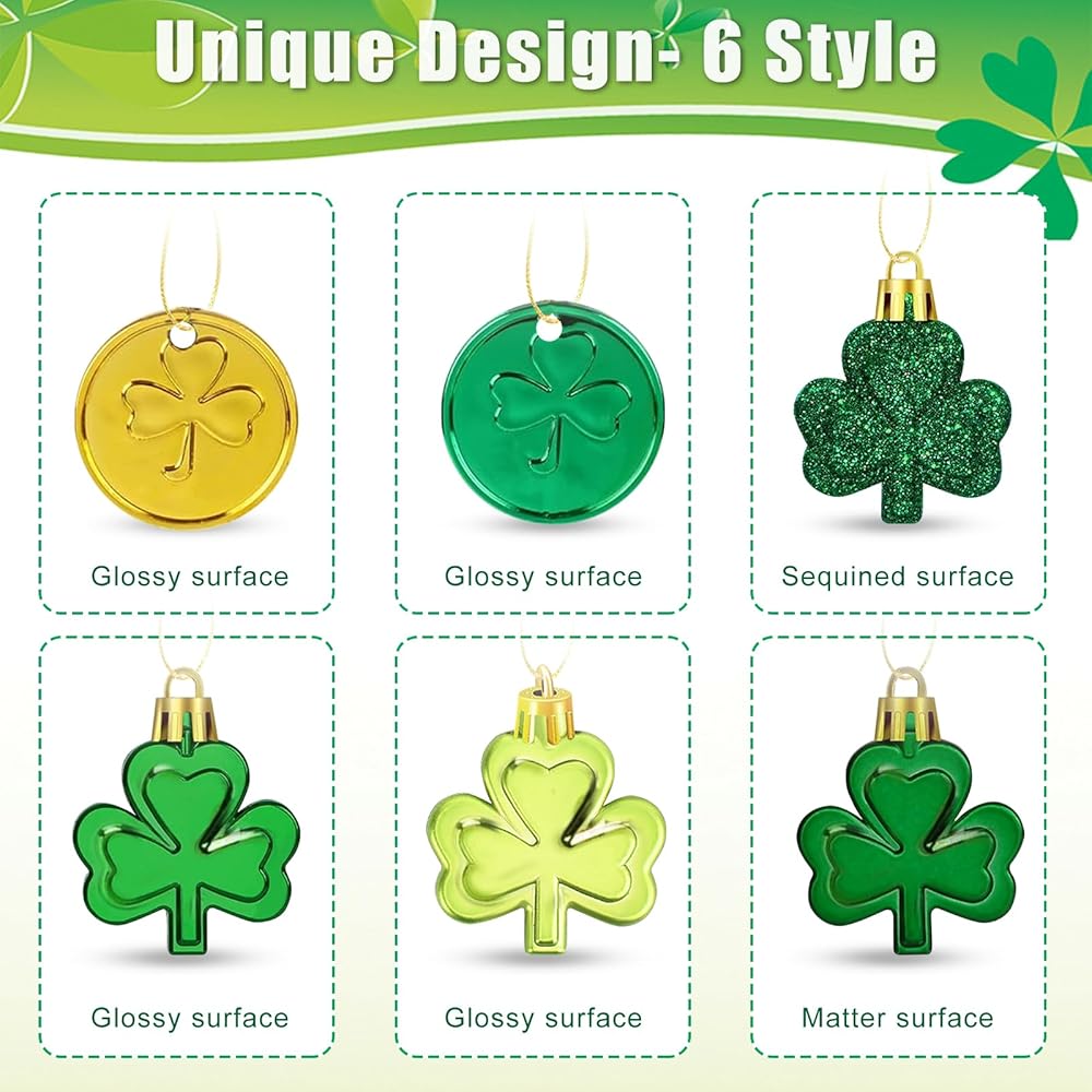 WIDE APPLICATION: These lucky shamrock baubles are perfect for St. Patrick's Day party supplies. They can be used for party decorations, table decorations, keychain pendants, home or shop decorations, and can also be hung on bottles or mini tree decorations, windows, door handles, and more. Create a festive atmosphere for St. Patrick's Day
