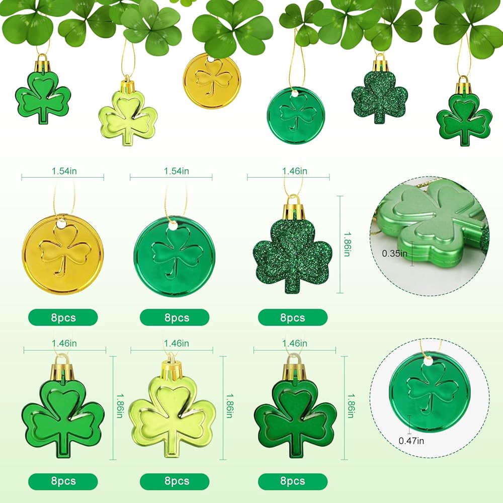 Quality Materials: This st patricks day shamrock ornaments are majorly made of quality plastic, and feature an embossed surface with the shamrock sign and good luck sign, having shiny, gold or green finish. They are safe and durable to use without smell, and no fading easily, lightweight and portable to hang. These lucky shamrock ornaments will accompany you long time