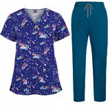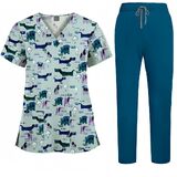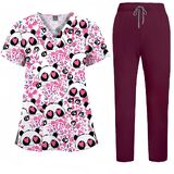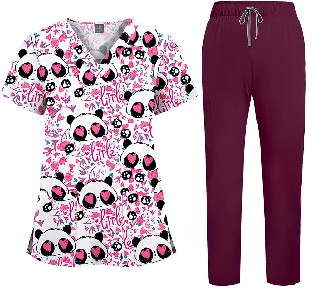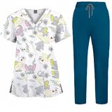Yodilala Printed Scrubs for Women Nurse uniforms Medical Proffesional V Neck Short Sleeve Stretch Nursing Scrubs Set Uniform