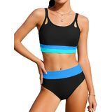 🌟【Color-Blocking Design】Girls Bathing Suit Bikini sets features a stylish color-block design – making your daughter stand out from the crowd! The bikini top features a scoop neck and adjustable straps, providing a comfortable and secure fit that won't slip. It also includes removable chest pads for personalized support. The high-waisted bottoms provide moderate coverage and support, allowing girls to swim confidently and comfortably in the water, making it an ideal choice for growing girls.