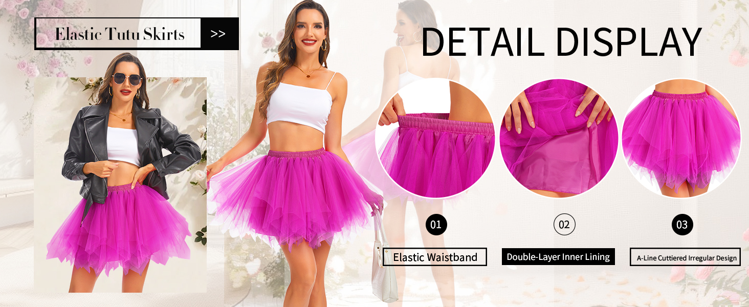 أزياء احتفالية مثالية: مع اقتراب عيد الهالوين، أضف سحرًا فريدًا إلى ملابسك! التنورة السوداء تنضح بالغموض، مثالية للسحرة أو مصاصي الدماء أو المظهر القوطي. التوتو الأحمر مثالي لأزياء الشيطان. يناسب التوتو الأبيض أزياء الملاك أو السيدة العذراء. تنورات قصيرة خضراء تناسب ملابس القزم، وعيد الميلاد، وعيد القديس باتريك. التوتو الوردي رائع لحفلات الثمانينات!
