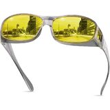 [Night Vision HD Clarity & Safe Driving]: Equipped with yellow polarized TAC lenses, these driving glasses significantly improve visibility in low light conditions (night, foggy, rainy) by increasing contrast, reducing glare, and sharpening road details, thereby achieving safer night driving. Tip: yellow lenses are for night driving glasses, while gray are sunglasses for daytime use and do not provide night-driving functionality.