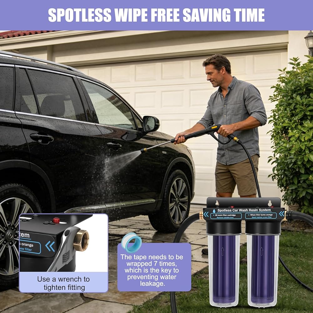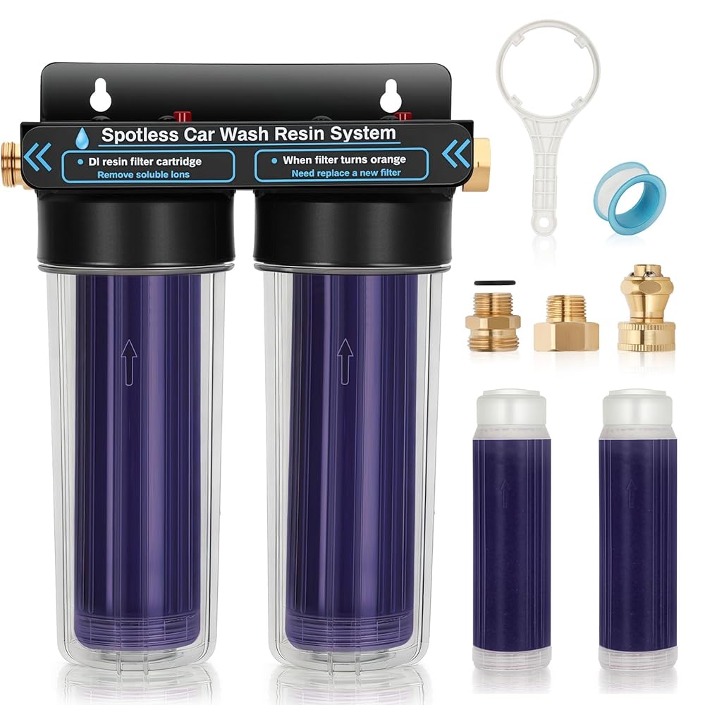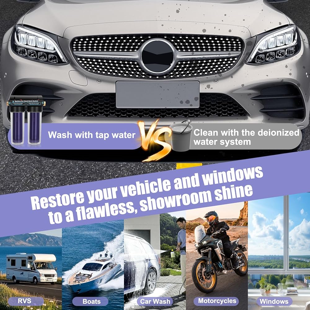 نظام مياه نظيف لغسيل السيارات، فلتر مياه منزوع الأيونات مع الراتنج، نظام مياه منزوع الأيونات لغسيل السيارات، وحدة شطف محمولة خالية من البقع للمركبات الترفيهية والدراجات النارية والسيارات، بدون تجفيف المناشف، راتنج متغير اللون