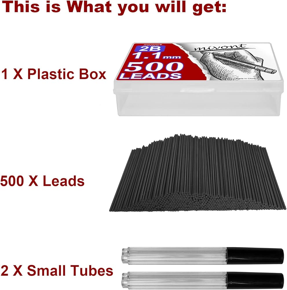 • MASSIVE VALUE - 500 PREMIUM LEADS: Never run out of lead again! This bulk box contains a whopping 500 pieces of high-quality 1.1mm pencil lead, offering incredible long-term value for students, artists, professionals, and office use.