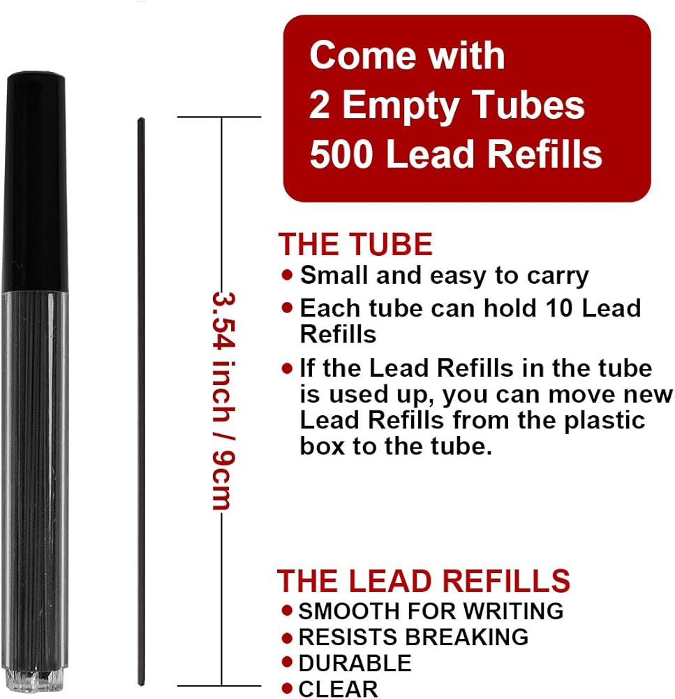 • CONVENIENT STORAGE & EASY REFILLS: The sturdy, resealable box keeps your leads organized, clean, and protected from moisture or spills. Quickly and easily reload your mechanical pencil for uninterrupted productivity.Come with 2 small tubes,easy to carry
