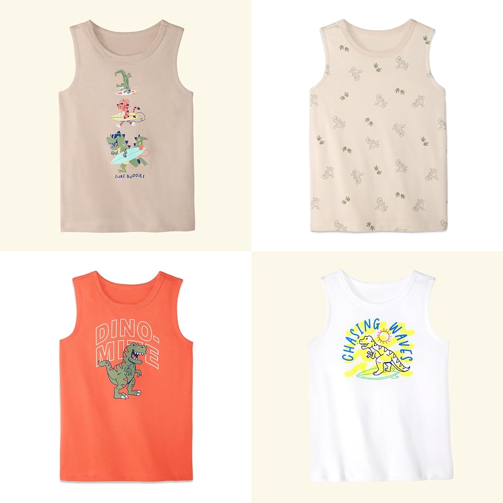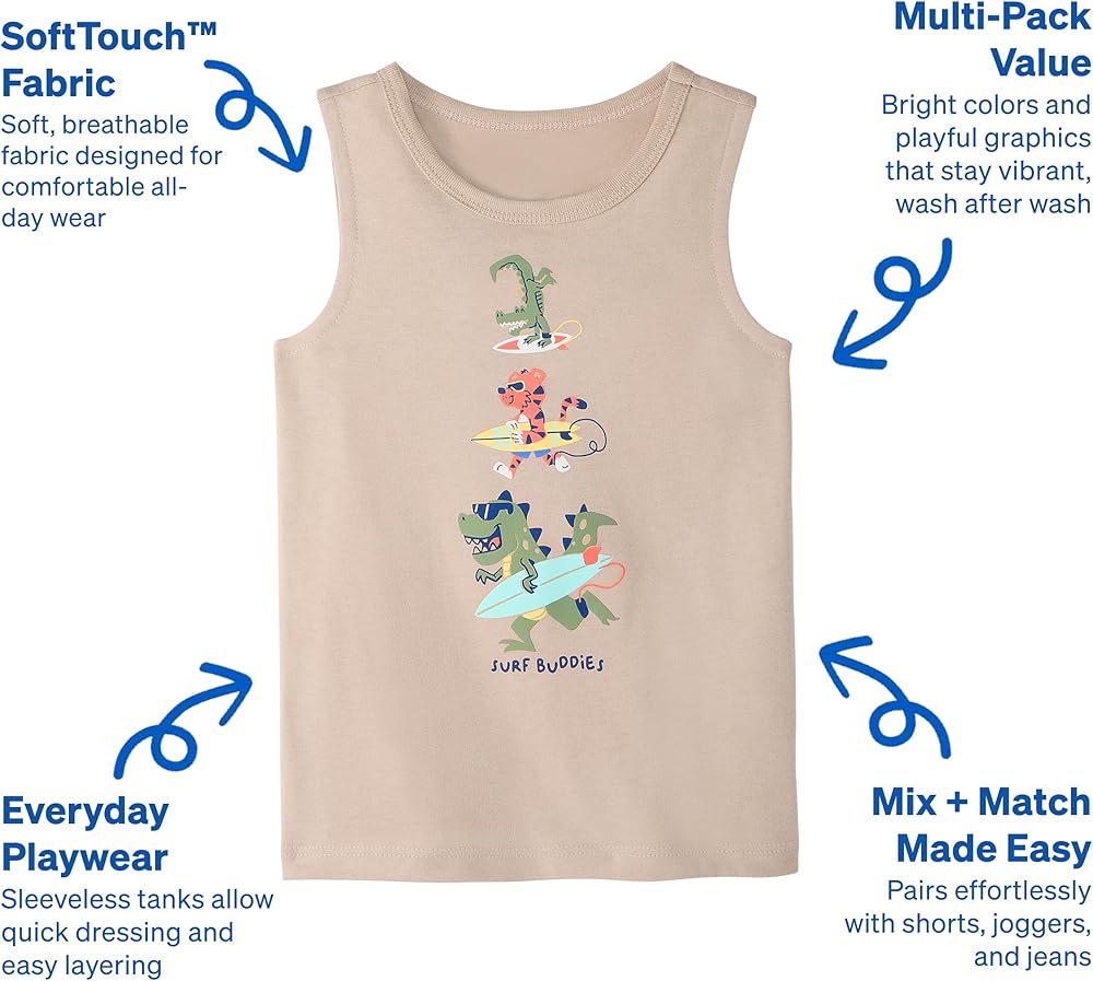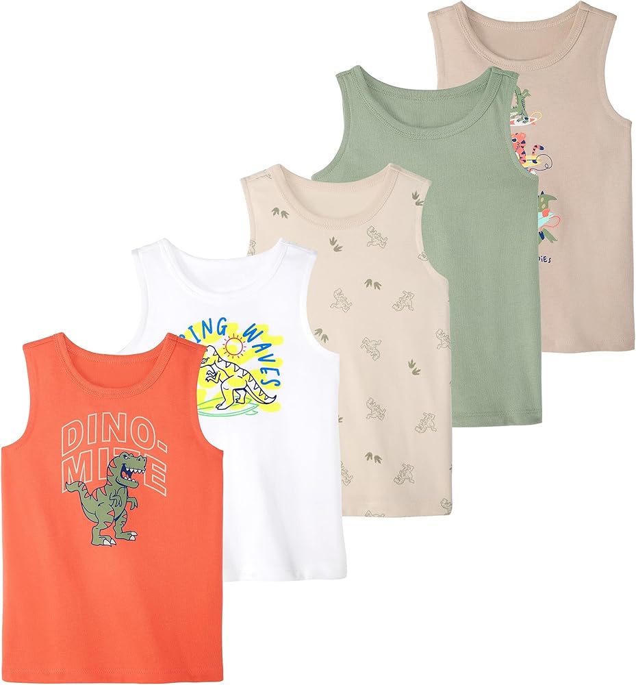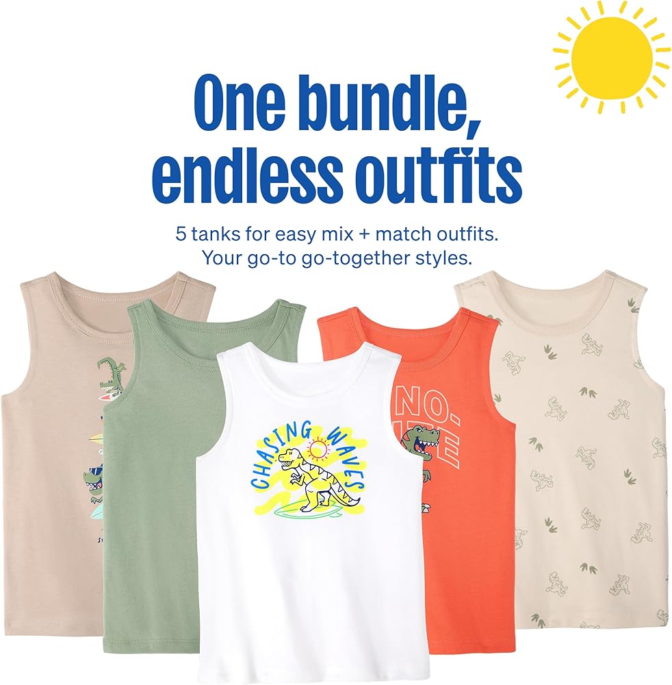• 5 قطع من تي شيرتات Garanimals للأطفال الصغار Dino Tank: مقاس 6T باللون البيج والأخضر الداكن والبرتقالي والأبيض؛ مثالية للمزج والمطابقة وتغييرات الملابس اليومية