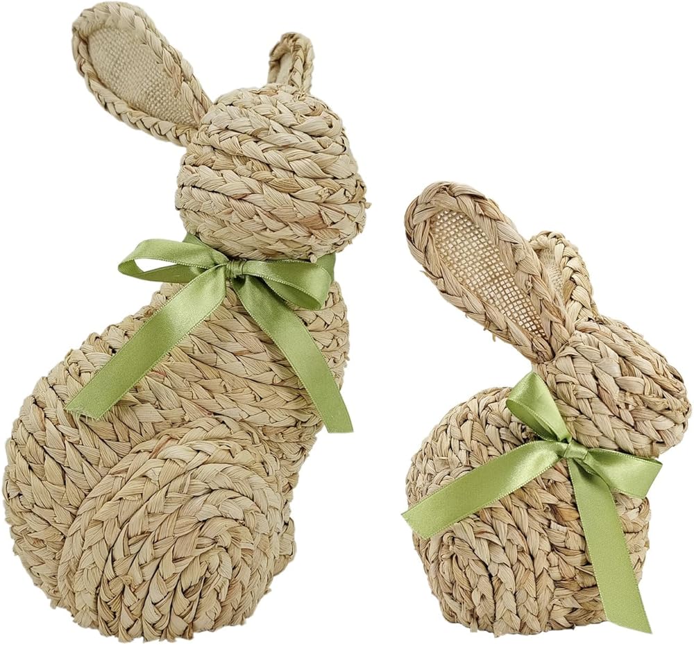 [What You Get] You will receive 2 pieces elegant Easter bunny. They are purely hand made with natural materials, trimed with ribbon bow, and will be your fantastic Easter decorations
