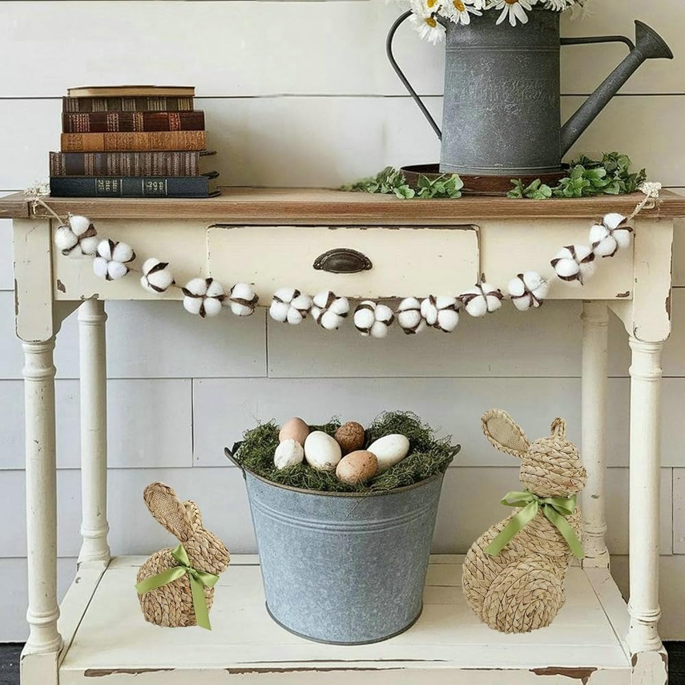 [Premium Quality] Carefully selected corn husk, etc. natural materials over polyfoam body, purely hand braided and hand made with exquisite workmanship. This is a set of beautiful and distinctive farmhouse Easter decor which is also durable and reusable