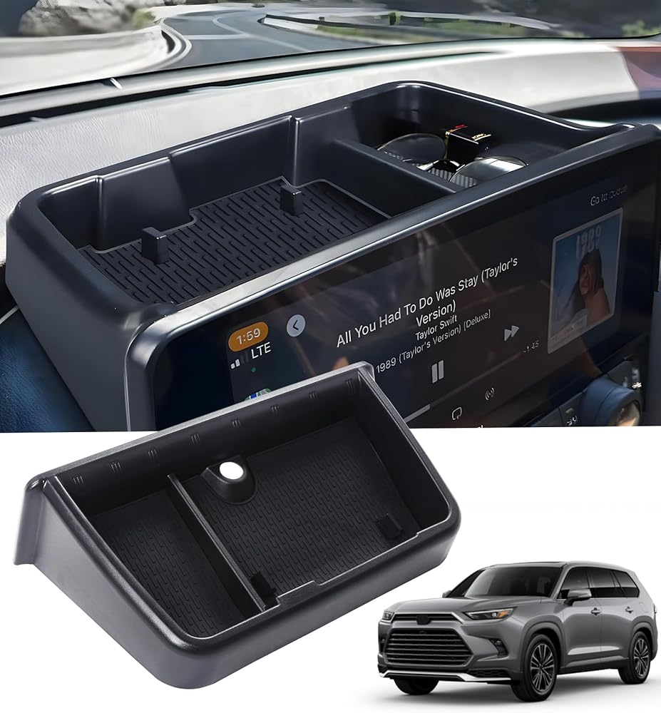 صندوق تخزين لوحة القيادة خلف الشاشة لسيارة Toyota Grand Highlander 2024 2025 2026، صينية تنظيم وحدة التحكم المركزية للملحقات الداخلية لـ 24 25 26 Grand Highlander، أسود in Kuwait