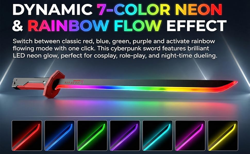 Cyberpunk Neon Sword-31.5 بوصة LED سبارك سيف مع دخان، غمد ذاتي الإخراج، إعادة الشحن، ميزة شرارة فلينت قابلة للاستبدال للحفلات التنكرية