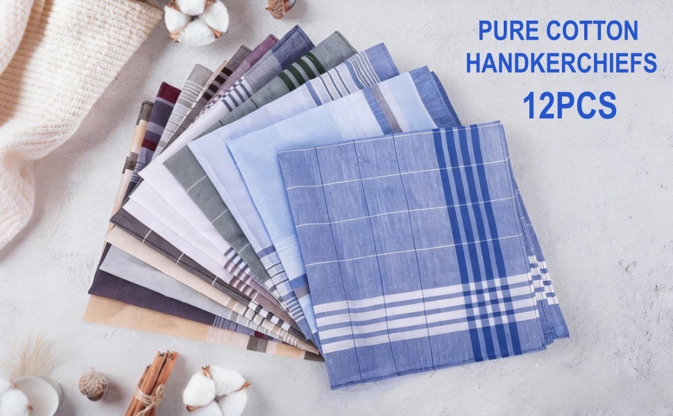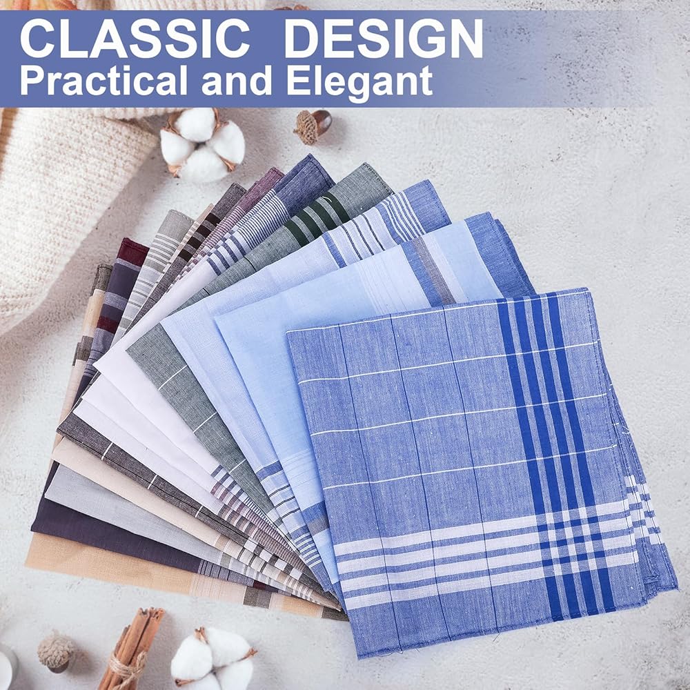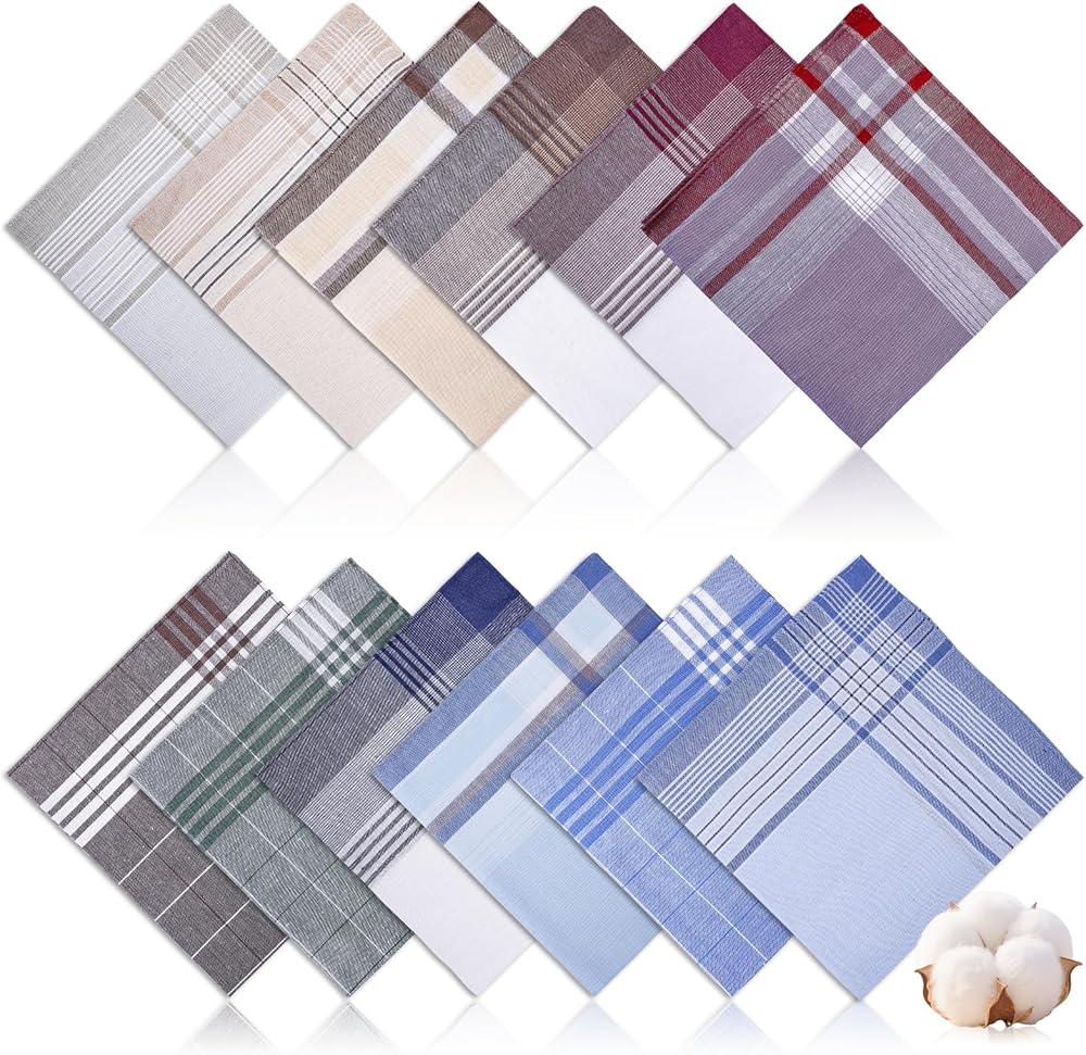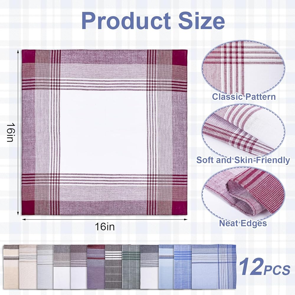 [12 قطعة] مناديل للرجال، مقاس 40.64 × 40.64 سم، منديل كلاسيكي مصنوع من القطن الناعم بنسبة 100%، مربعات جيب للرجال مع شيك