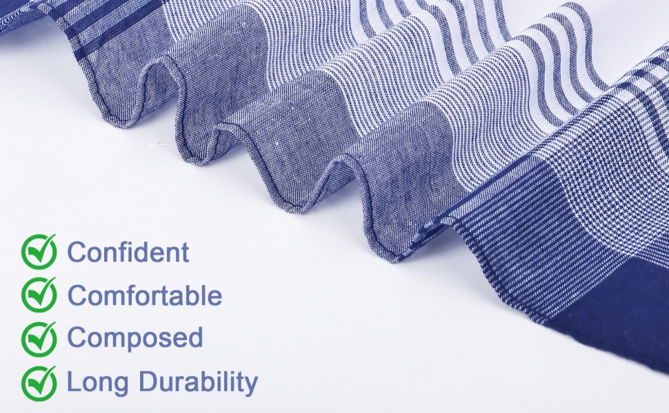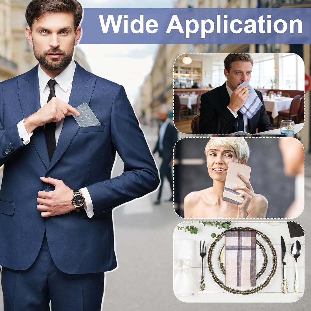 • 【العبوة متضمنة】 12 عبوة، كل منها 40.64 سم × 40.64 سم. مثالية لمختلف الاحتياجات: مسح العرق، أو آداب الطاولة، أو تنظيف النظارات أو الشاشات. يمكن طيها في مربع جيب البدلة، وهي مثالية لاجتماعات العمل وحفلات الزفاف والمناسبات الرسمية لتعزيز أسلوب الرجل النبيل.