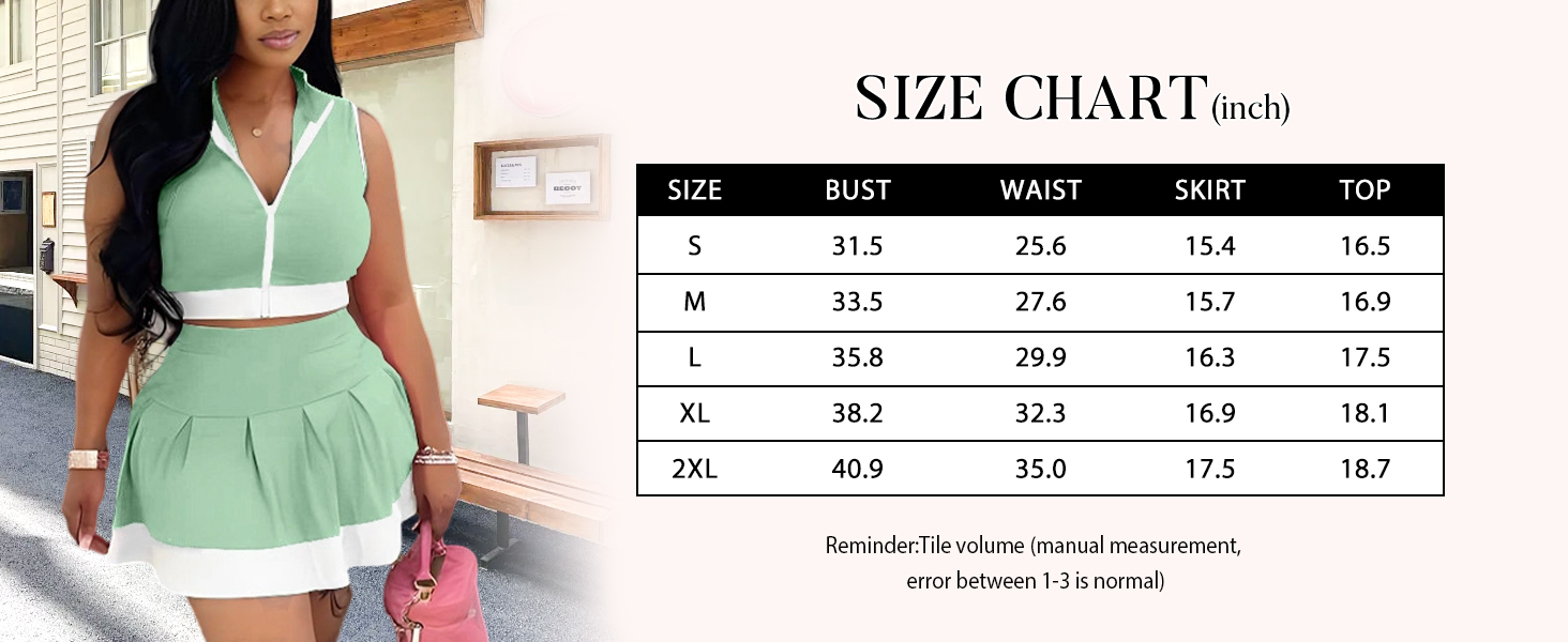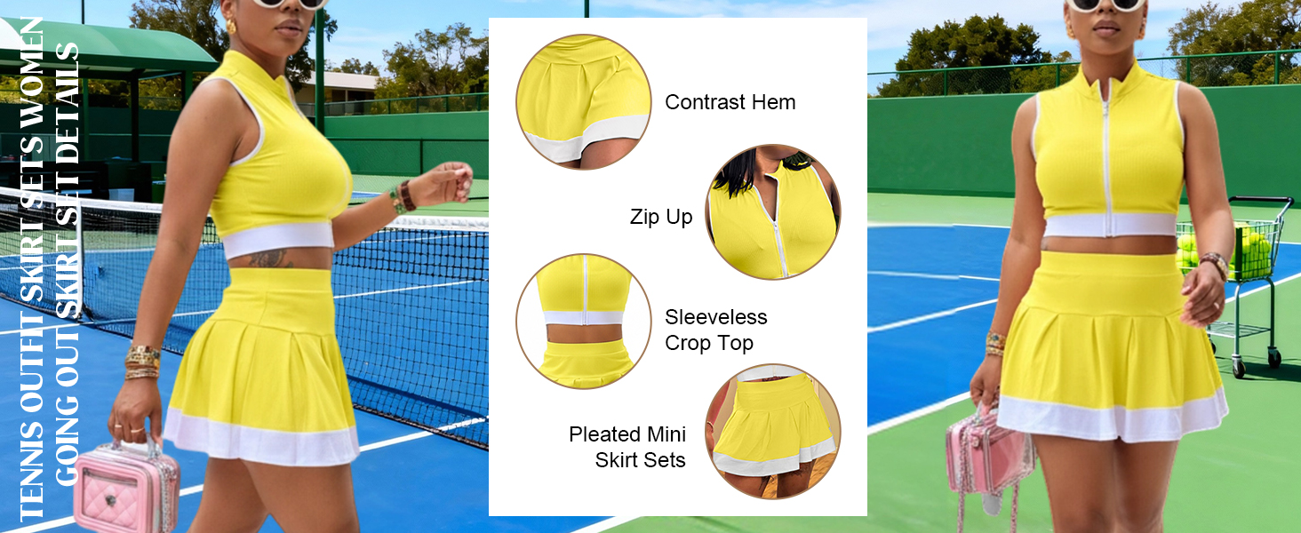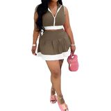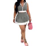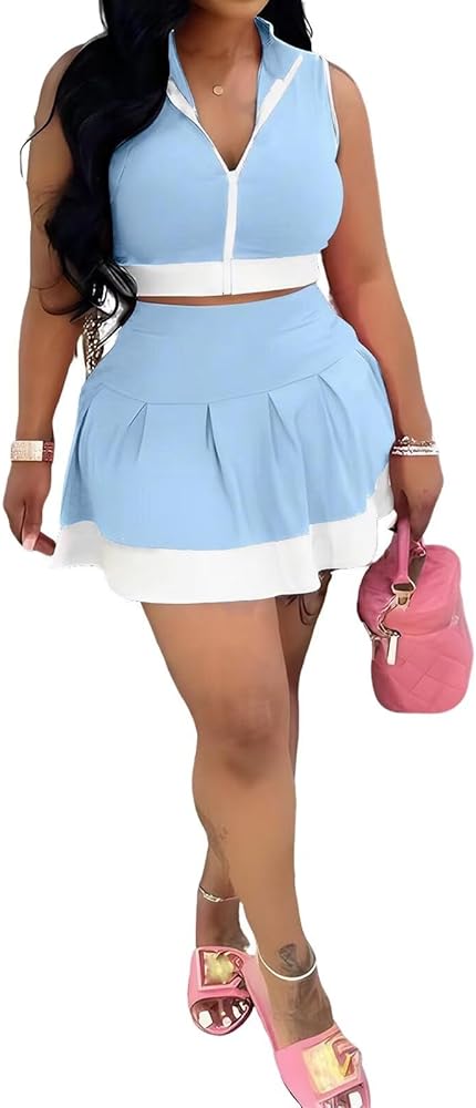 مجموعة تنورة نسائية مكونة من قطعتين من Opestin مكونة من قطعتين من الألوان لتجريب التنس، فستان قصير بطيات وسحاب للخروج والحفلات in Kuwait
