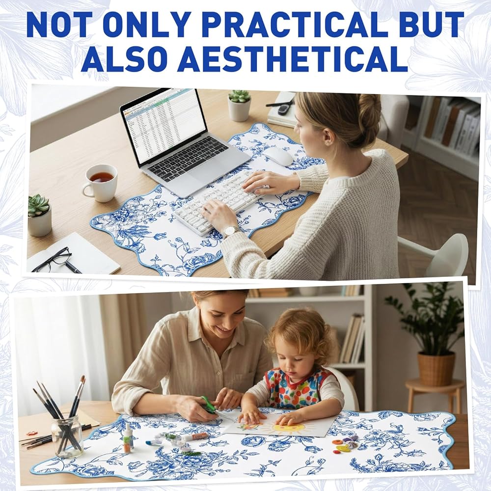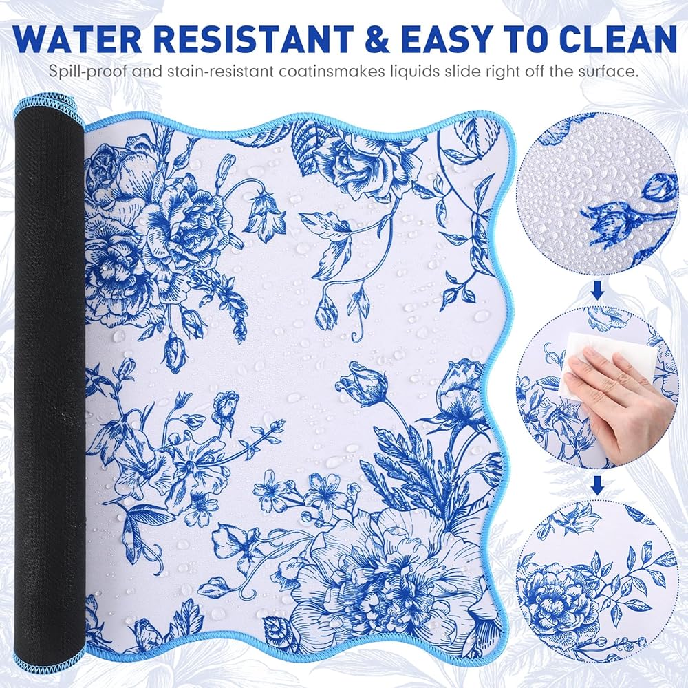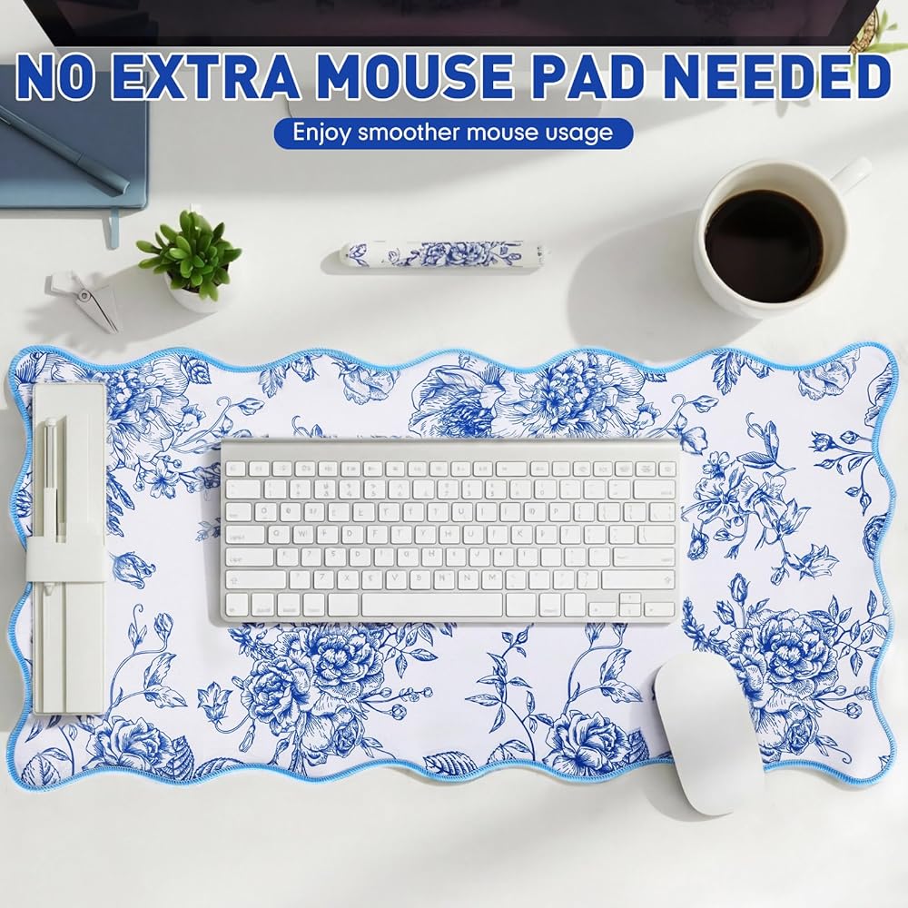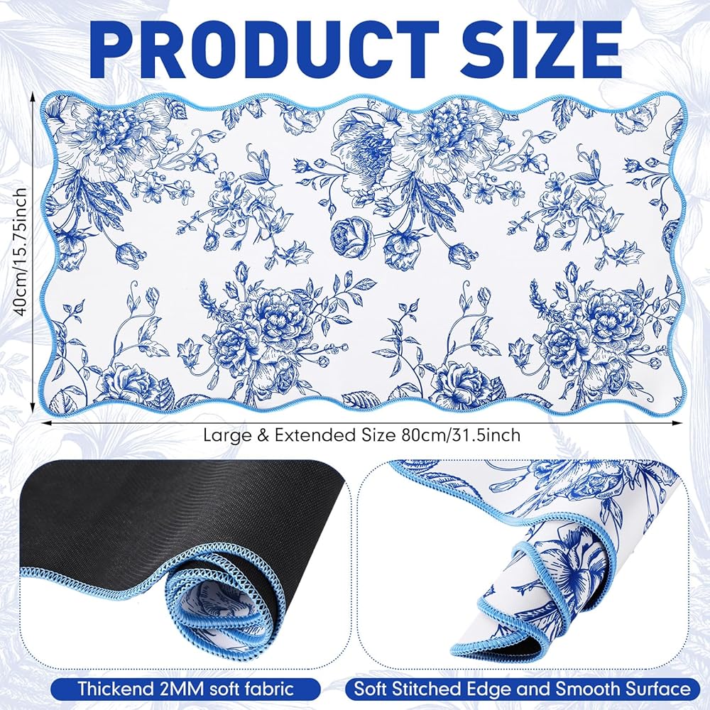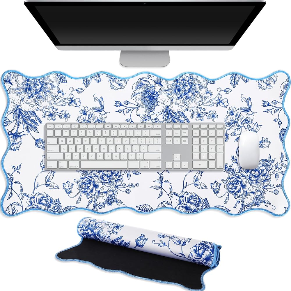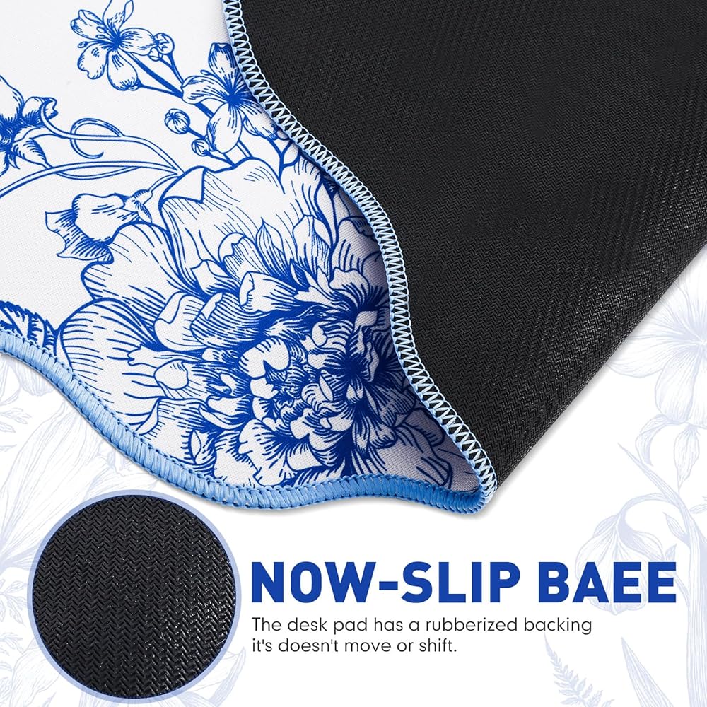 Elevate your desktop aesthetics with our desk mat for desktop, featuring a captivating blue-and-white floral pattern. The vibrant colors, resistant to fading, scratching, and peeling, offer a personalized touch while maintaining functionality. This large mouse pad for desk not only protects your surface but also highlights your unique style, making it an essential addition to any workspace.