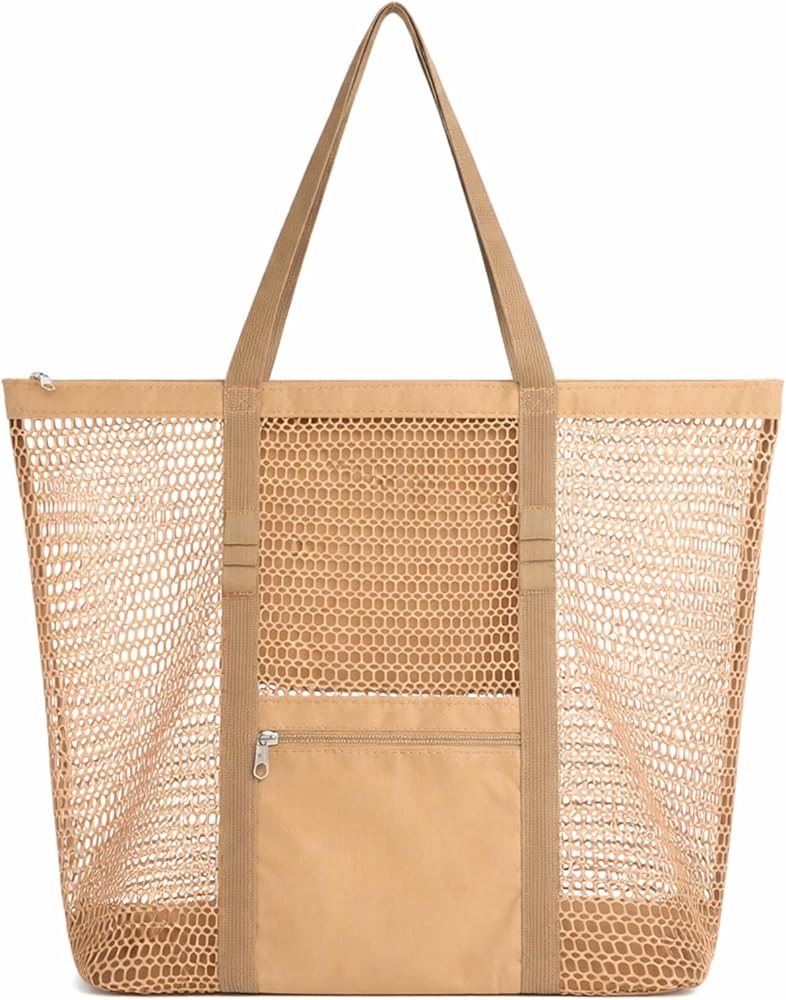 مادة شبكية متينة - حقيبة الشاطئ النسائية هذه مصنوعة من شبكة نايلون مزدوجة الطبقات، بقياس 14.17 بوصة طول × 6.9 بوصة عرض × 14.6 بوصة ارتفاع، مما يوفر مساحة تخزين كبيرة لأساسيات الشاطئ مثل المناشف والواقي من الشمس وزجاجات المياه والمزيد. إنها خالية من الروائح ومقاومة للتمزق للاستخدام الدائم.