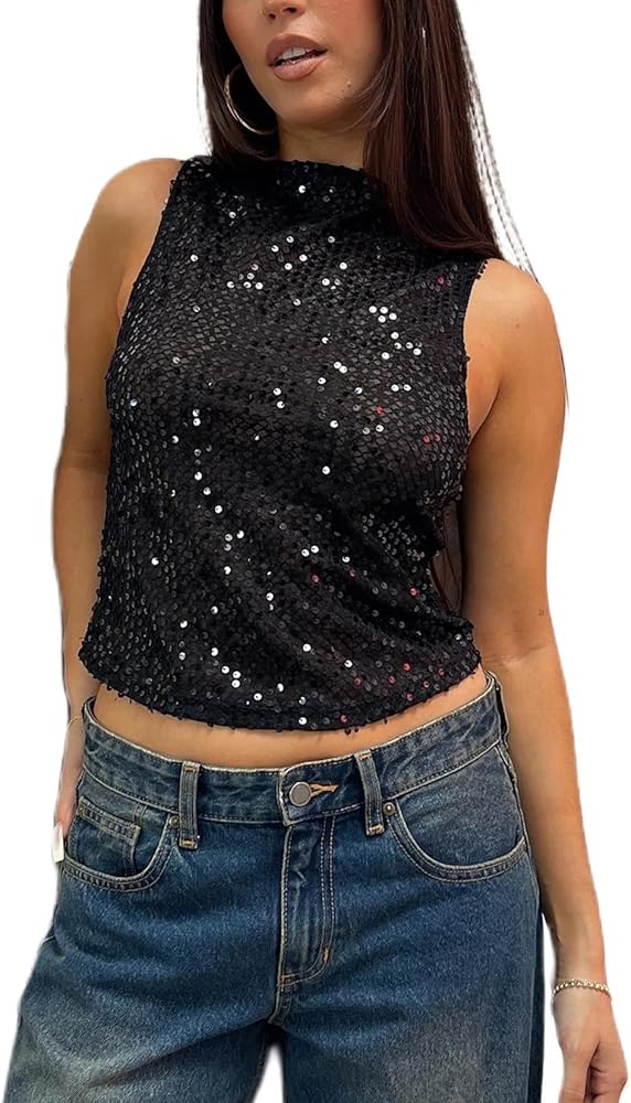 • Feature: Y2k sequins tank top features a crew neck sleeveless cut with slim-fit silhouette. The all-over glitter sequin cami top design catches every light source, while the solid color base creates versatile pairing options for going-out outfits