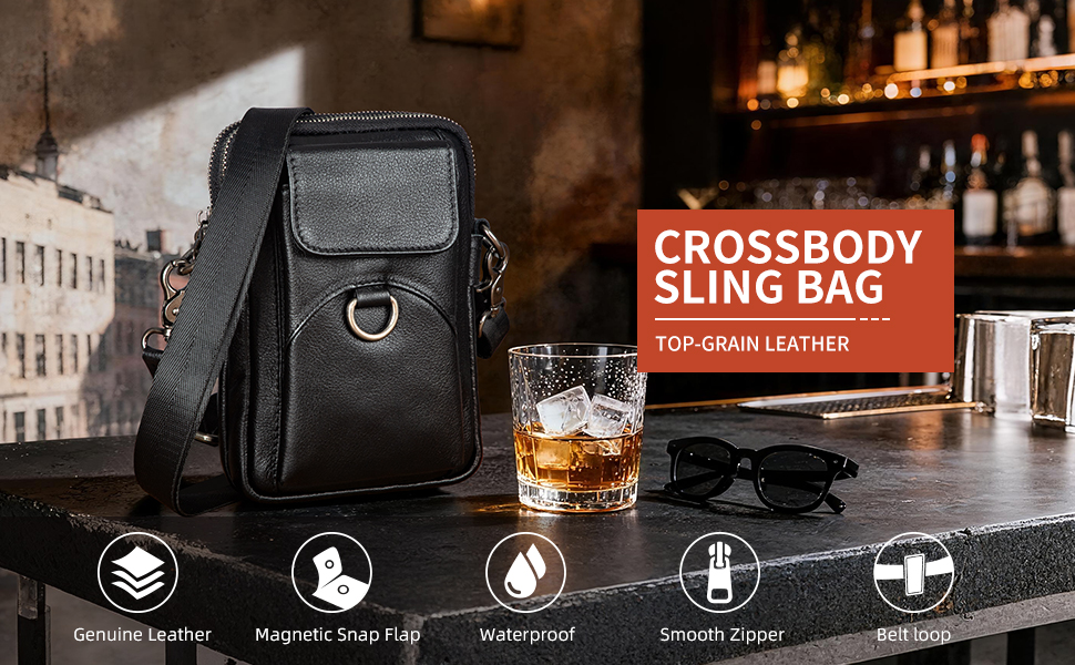 تصميم متعدد الاستخدامات: حقيبة كروس من الجلد المحبب بالكامل مع حزام كتف قابل للتعديل يصل إلى 57 بوصة، مثالية للاستخدام اليومي كحقيبة مراسلة، وحقيبة كتف، وحقيبة هاتف، وحقيبة خصر للسفر والرياضة والمشي لمسافات طويلة وركوب الدراجات والصيد والجري