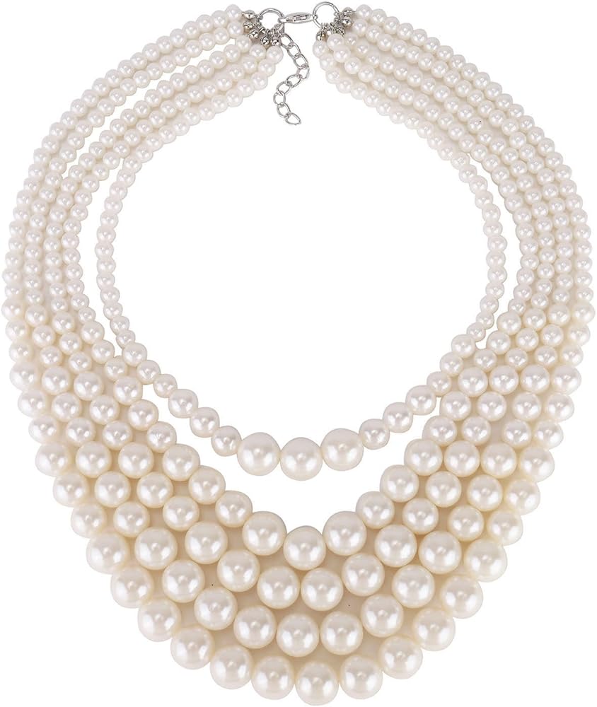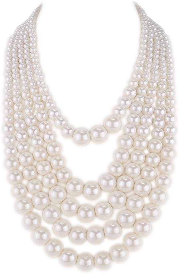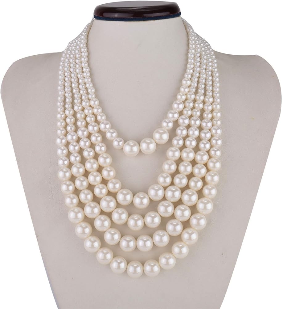 Kalse 5 طبقات حبلا مقلد اللؤلؤ حبلا قلادة قلادة بيضاء (5 فروع)