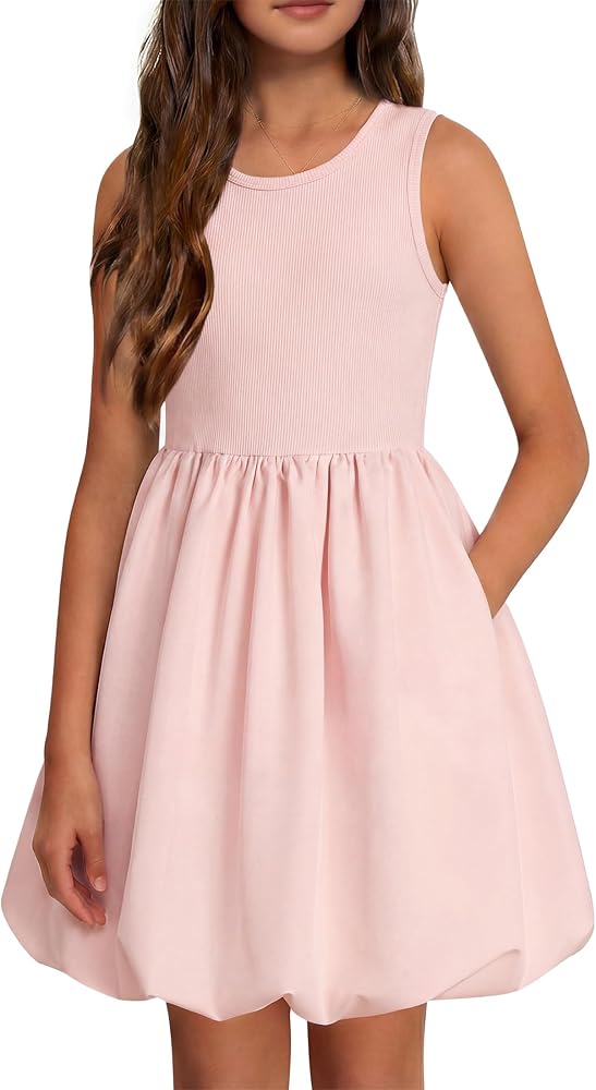 فساتين ALISISTER للفتيات صيفية بدون أكمام، فستان صيفي قصير مع جيوب، 7-13 سنة in Kuwait