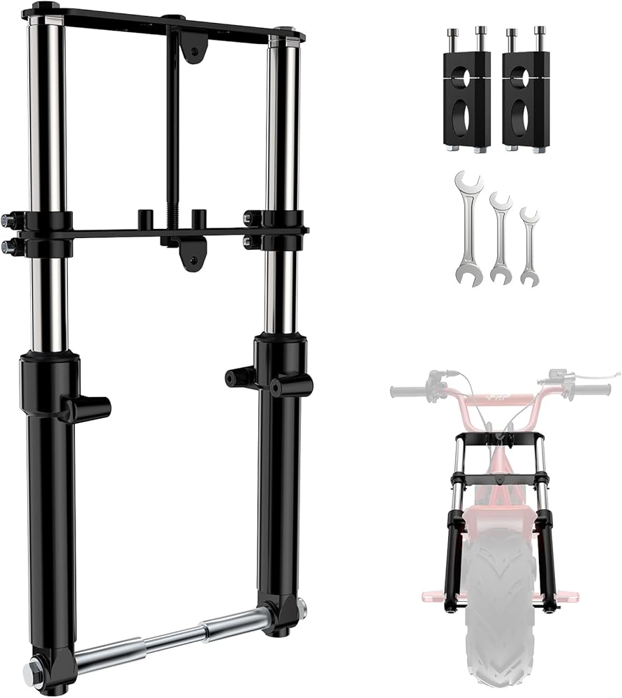 مجموعة شوكة تعليق أمامية صغيرة عالمية للدراجة - متوافقة مع كولمان CT100U، ميجا موتو، موتوفوكس، باجا DB30، نماذج 80cc 105cc، سهلة التركيب مع دليل التعديل، ضمان 10 سنوات، مع مشابك، أسود