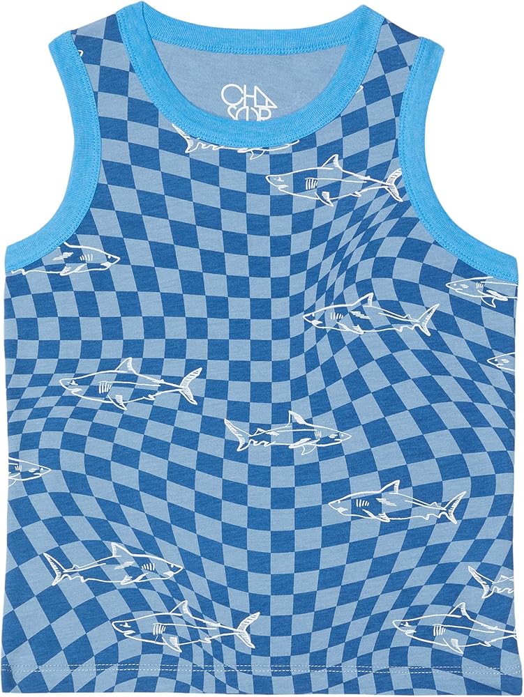 The soft fabric is a catch you won't want to miss! Pair it with trendy sweat shorts and sneakers. Dive into various blue shades for a refreshing summer look. Boy's Recycled Vintage Checker Shark Tank Fabric Content: 50% Polyester 38% Cotton 12% Rayon. Model wears size 6T. Imported. Style: CB1097-CHEKSHRK