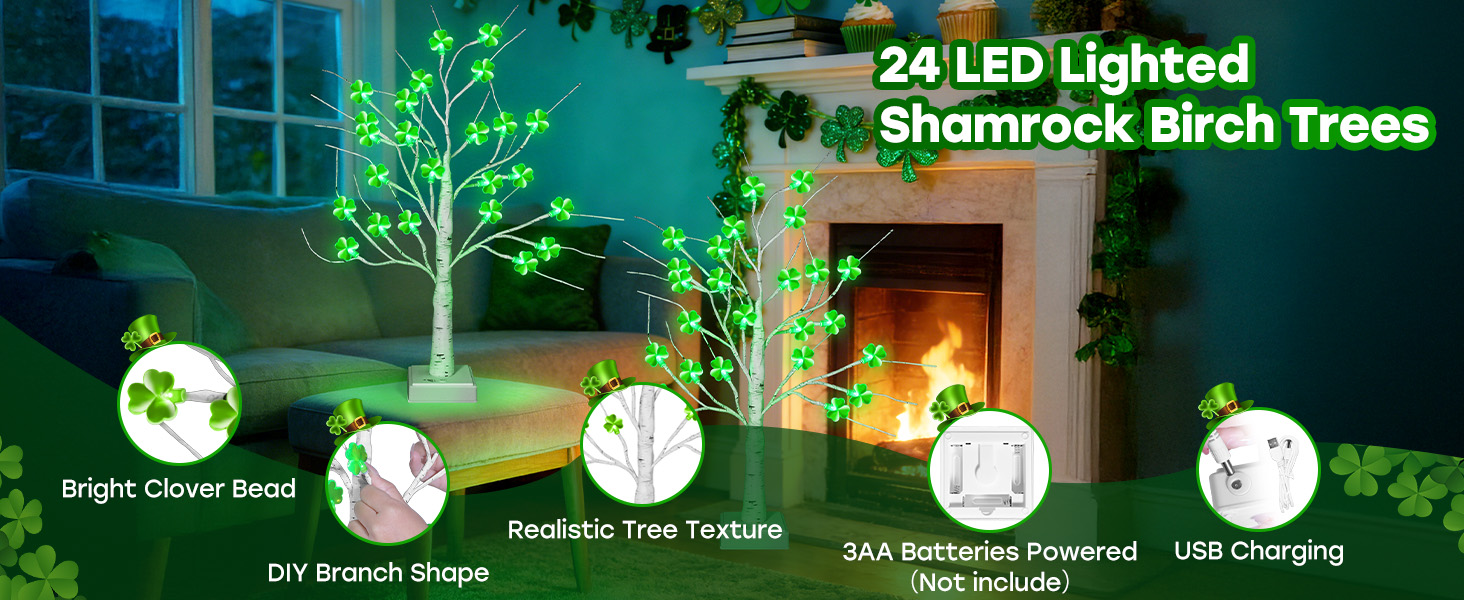 🍀فروع شجرة البتولا المرنة مع مصابيح LED: كل جذع ملفوف بشريط مزخرف أصلي من خشب البتولا، مما يمنحك شجرة البتولا التي تبدو طبيعية وليست بلاستيكية. تحتوي الفروع على قلوب سلكية مرنة، أو زغب للخارج للحصول على مظهر كامل، أو تبقيها نحيفة للأماكن الضيقة على ديكورات عيد القديس باتريك لعرض الطاولة.